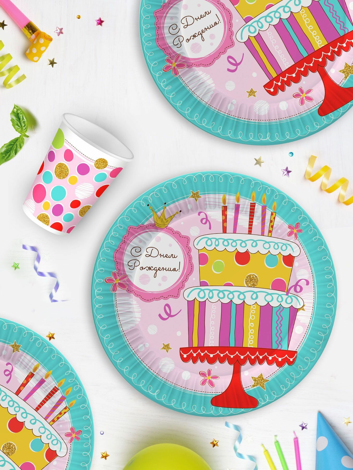 Купить Набор одноразовой бумажной посуды для праздника ND Play / Тортик (стакан, тарелка 23 см, по 12 шт.)