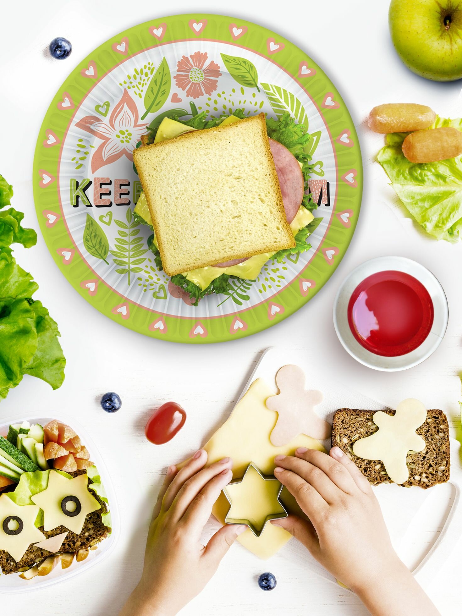 Набор одноразовой бумажной посуды для праздника ND Play / Авокадо-2 (тарелка 23 см, стакан по 12 шт.)