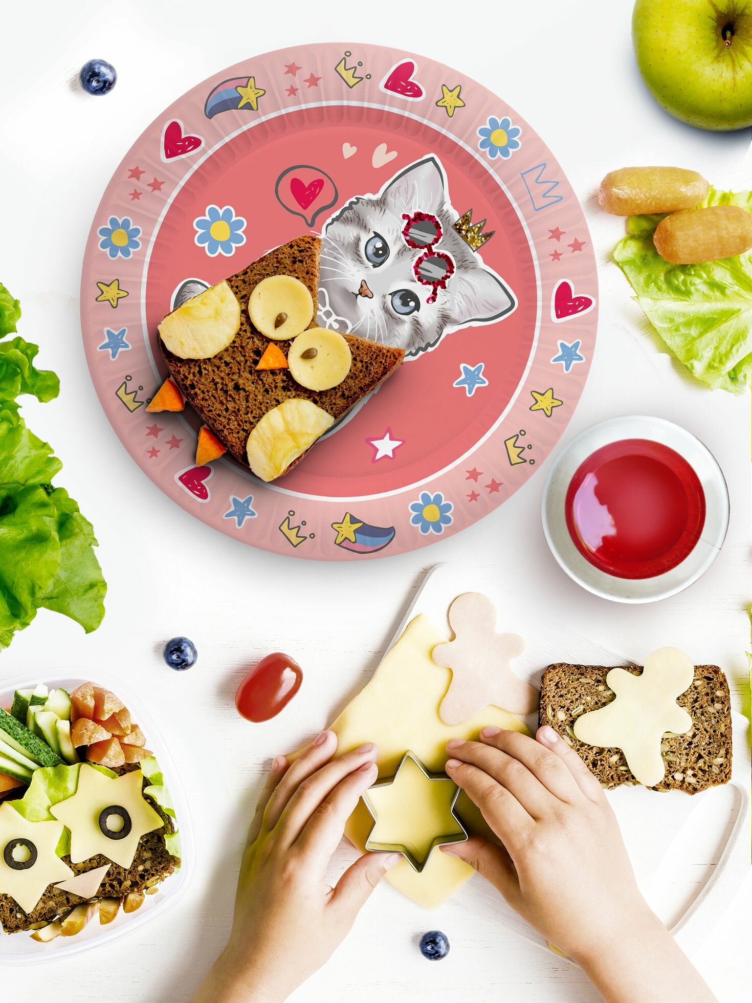Набор одноразовой бумажной посуды для праздника ND Play / Котенок в комиксе (тарелка 23 см, стакан, по 12 шт.)
