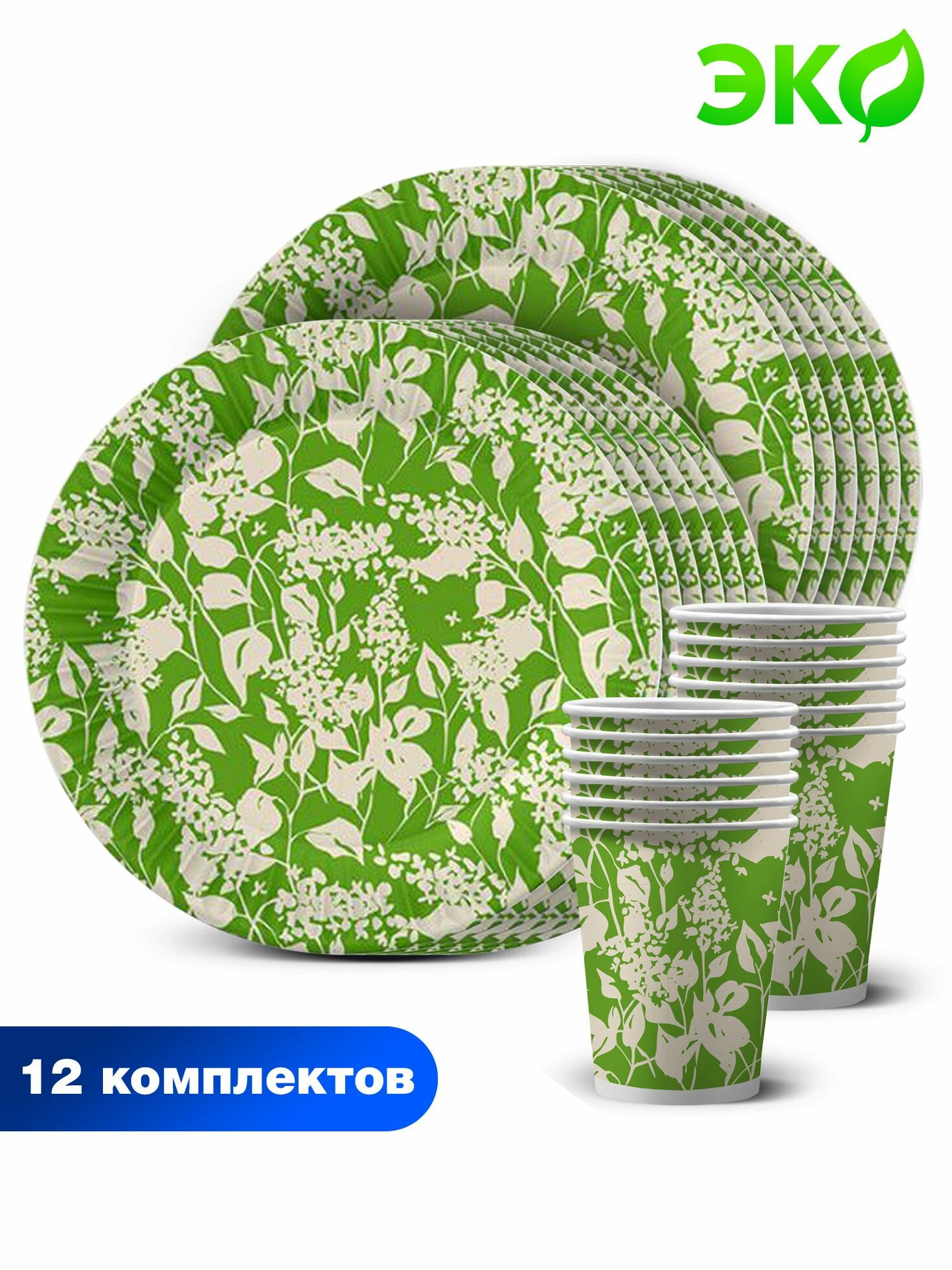 Набор одноразовой бумажной посуды для праздника ND Play / Авокадо №1 (тарелка 23 см, стакан, по 12 шт.)