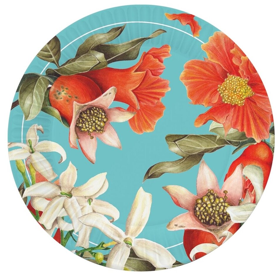 Купить Набор одноразовых бумажных тарелок Гранат на бирюзовом, в т/у пленке, 12 шт d=180 мм ND Play