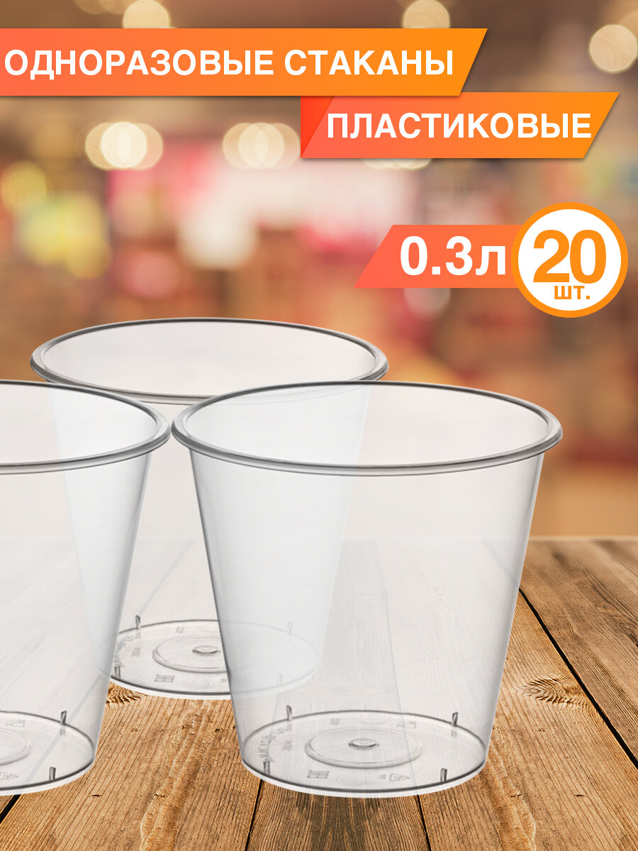 Купить Одноразовые стаканы пластиковые 300 мл, 20 шт