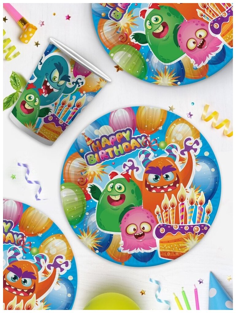 Купить Набор бумажной одноразовой посуды для праздника Чудики (тарелка мал, стакан, по 6 шт.) ND Play