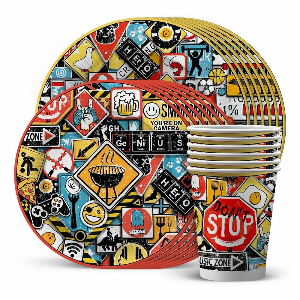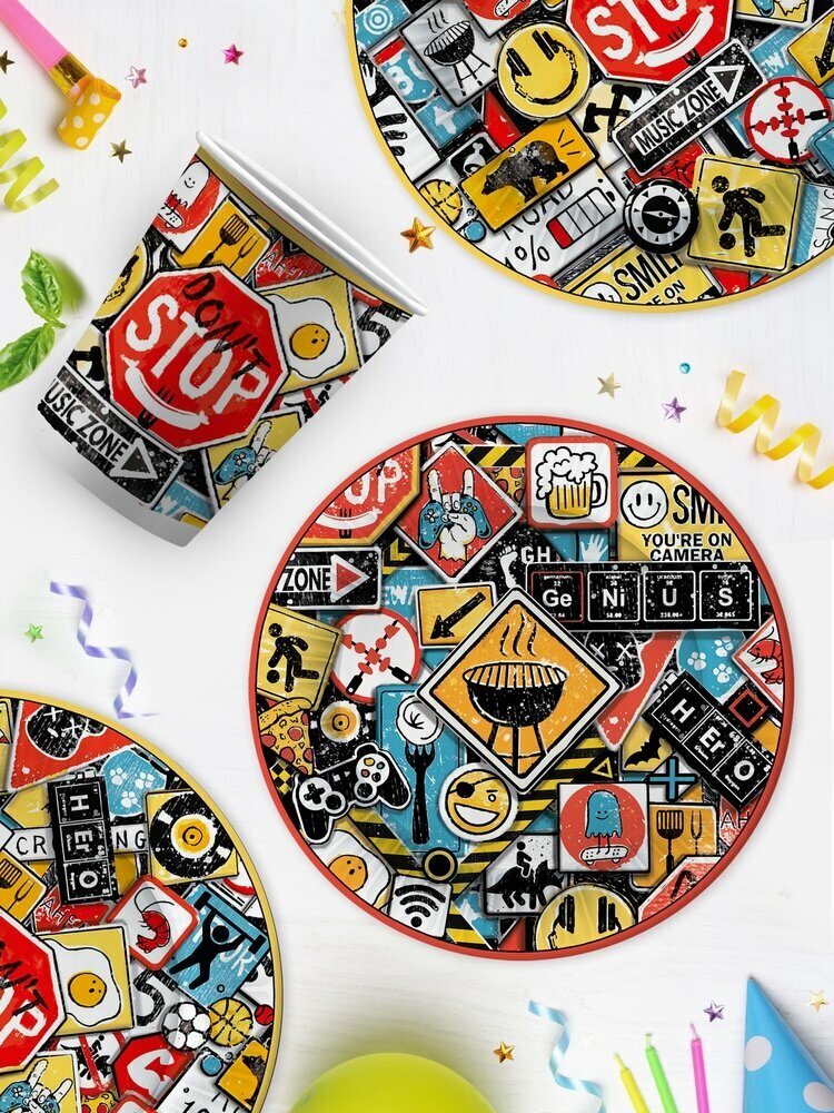 СохранитьНабор одноразовой бумажной посуды для праздника ND Play / Знаки яркие (тарелка бол, тарелка мал, стакан, по 6 шт.) интересное: