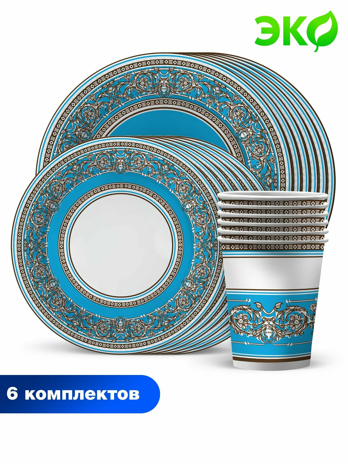 Набор для праздника Царская-калейдоскоп голубая (тарелка бол, тарелка мал, стакан, по 6 шт.)