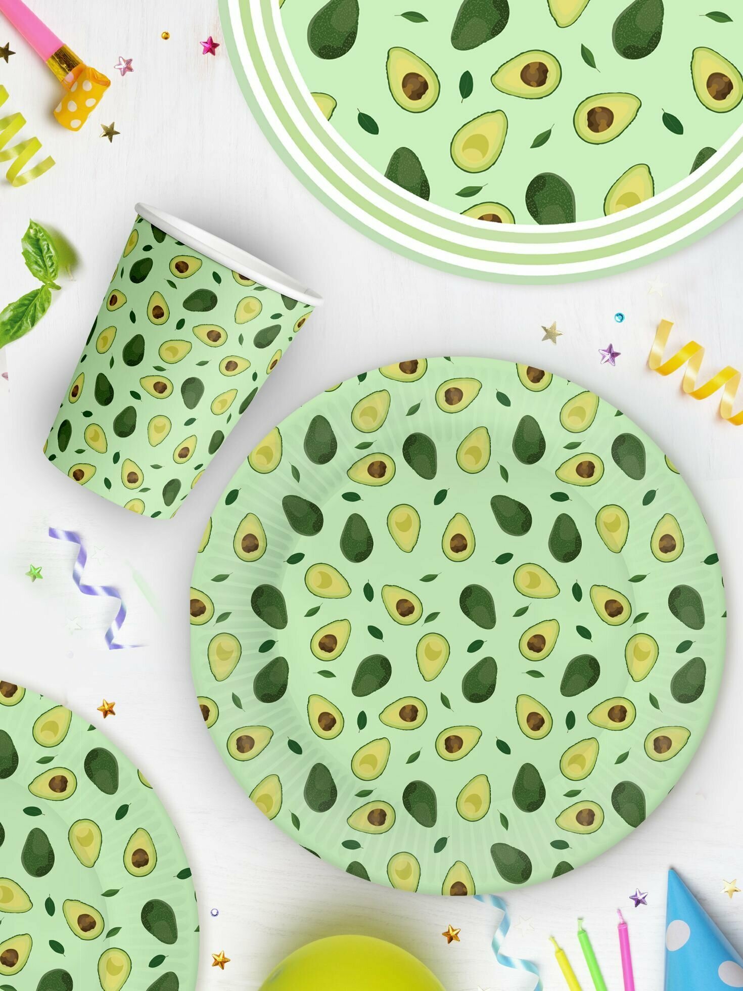 Купить Набор одноразовой бумажной посуды для праздника ND Play / Авокадо. Дизайн 2 (тарелка 18 см, тарелка 23 см, стакан 250 мл, по 6 шт.), 298790
