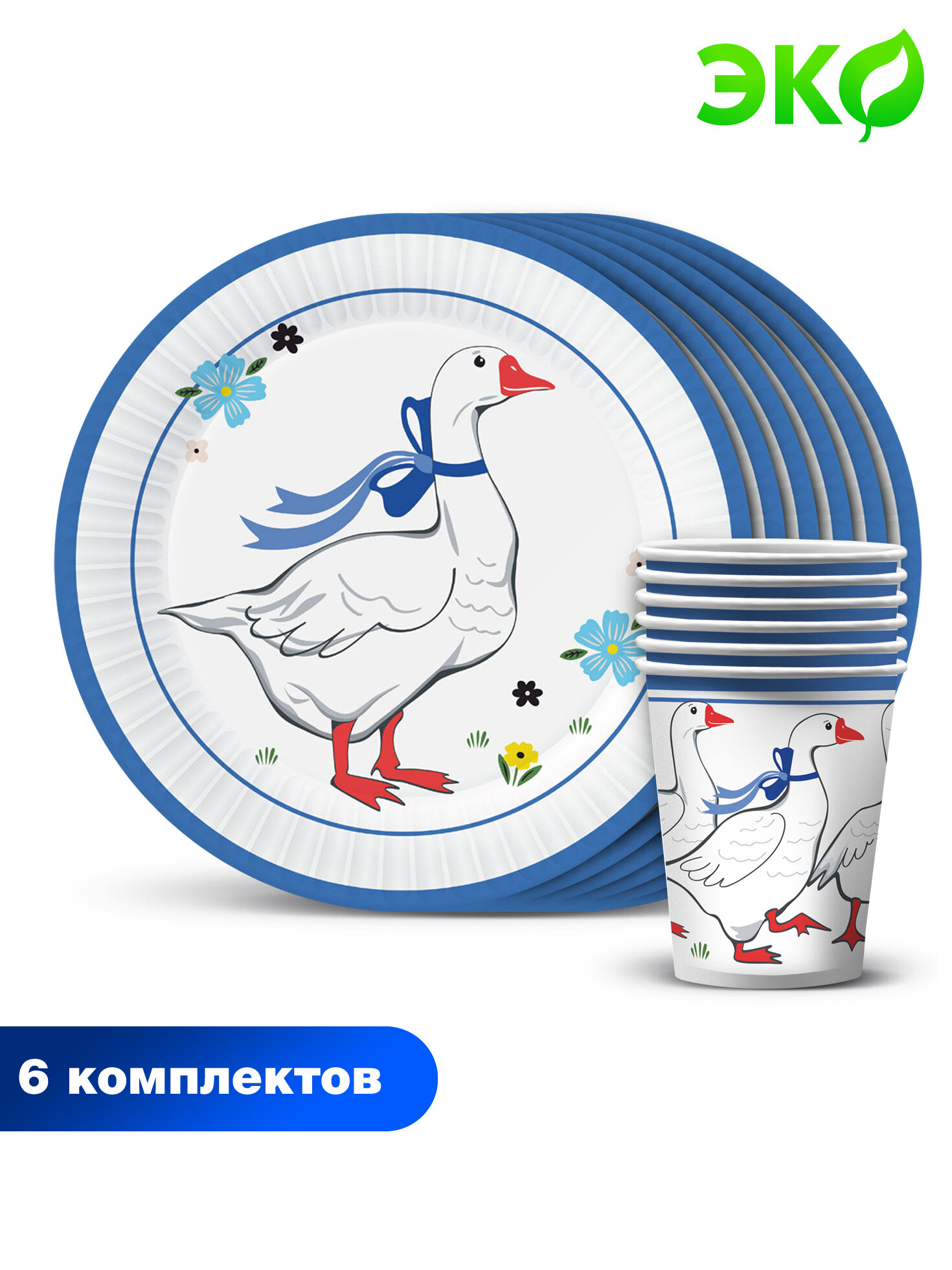 Набор для праздника Гуси-1 (тарелка бол, стакан, по 6 шт.) интересное: