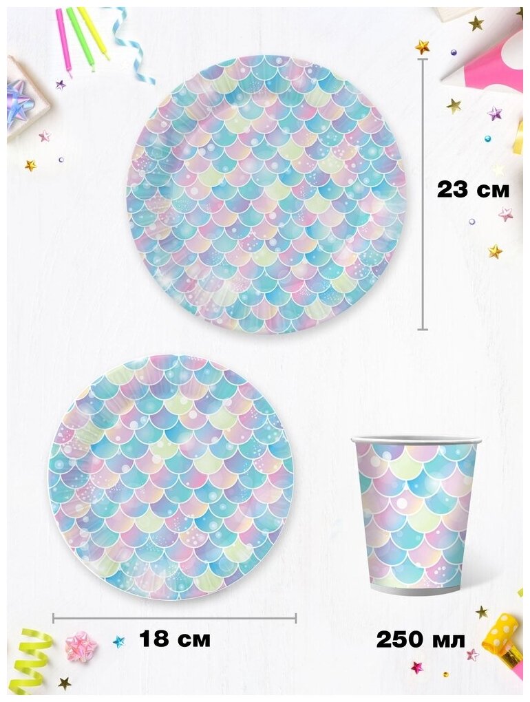 Купить Набор бумажной одноразовой посуды для праздника Русалка. Дизайн 3 (тарелка мал. и бол, стакан, по 18 шт.) ND Play