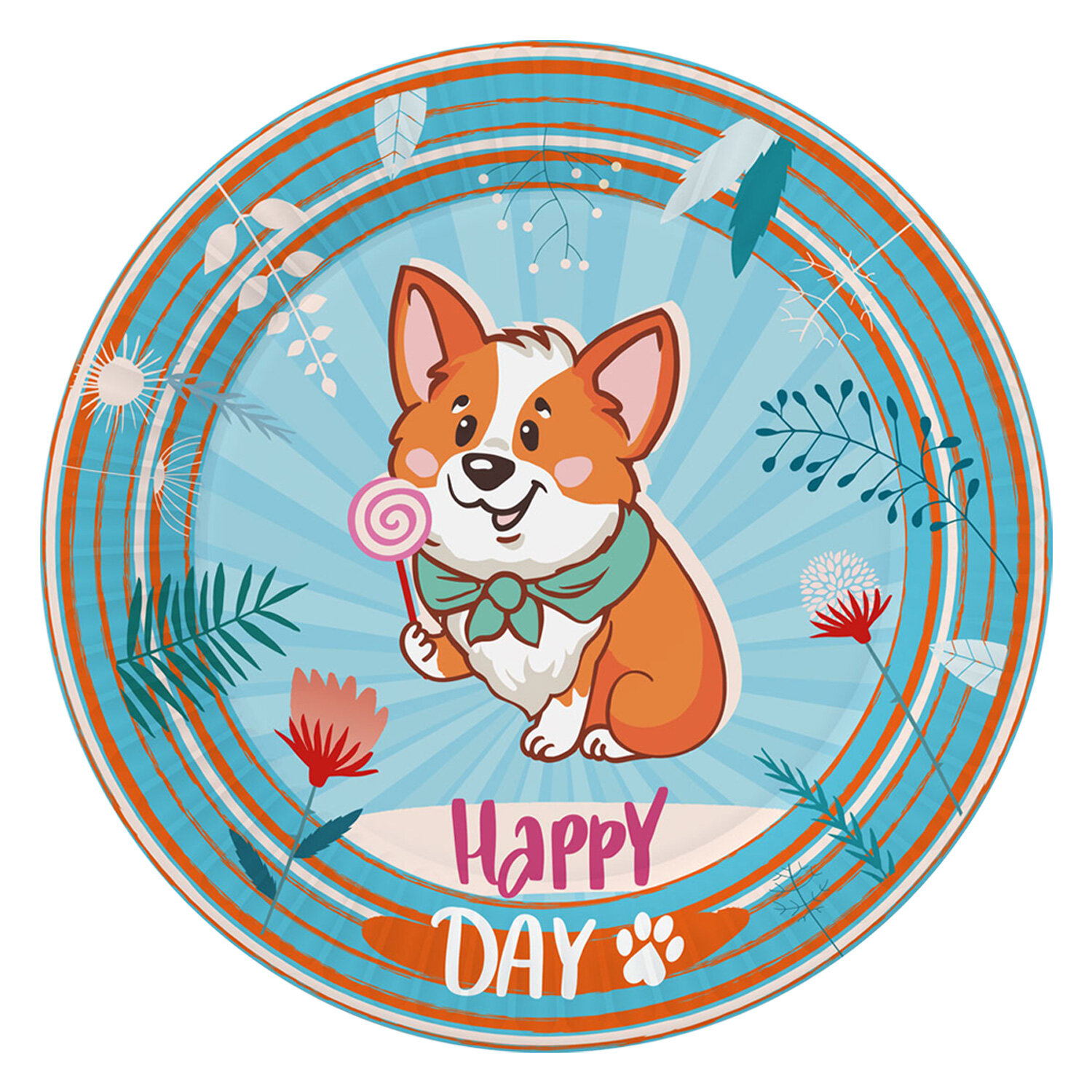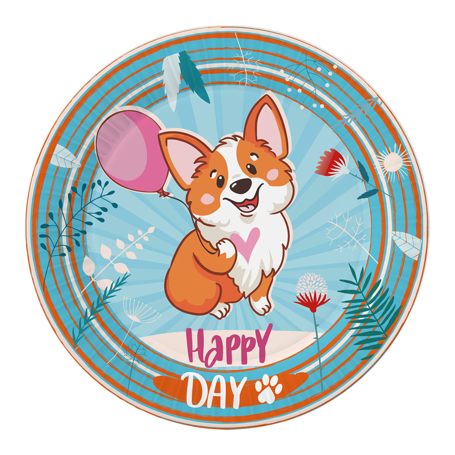 Купить Набор бумажной одноразовой посуды для праздника Корги (тарелка мал, тарелка бол, стакан, по 18 шт.) ND Play