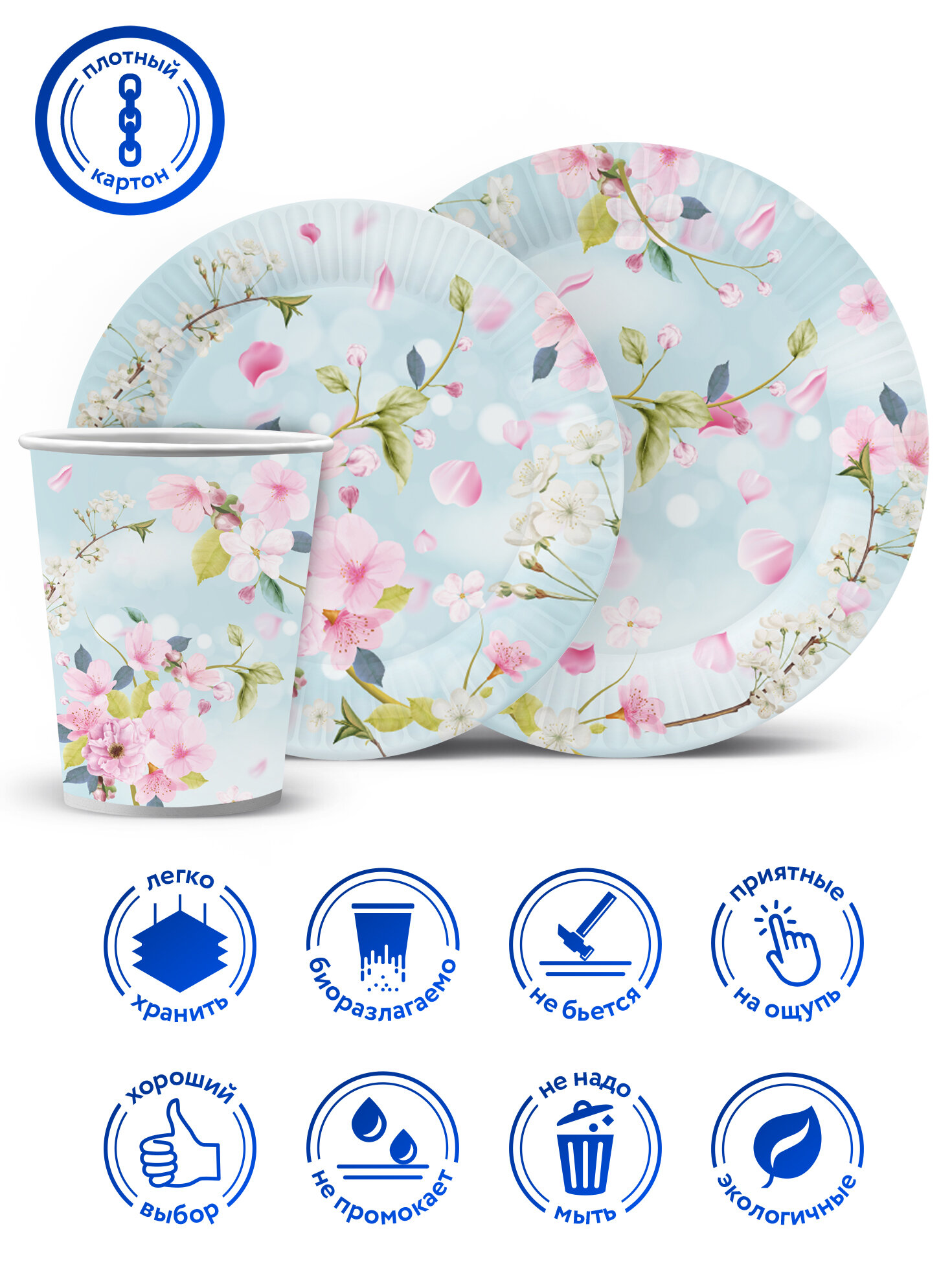 Купить Набор для праздника Яблоневый цвет (тарелка бол, тарелка мал, стакан, по 18 шт.)
