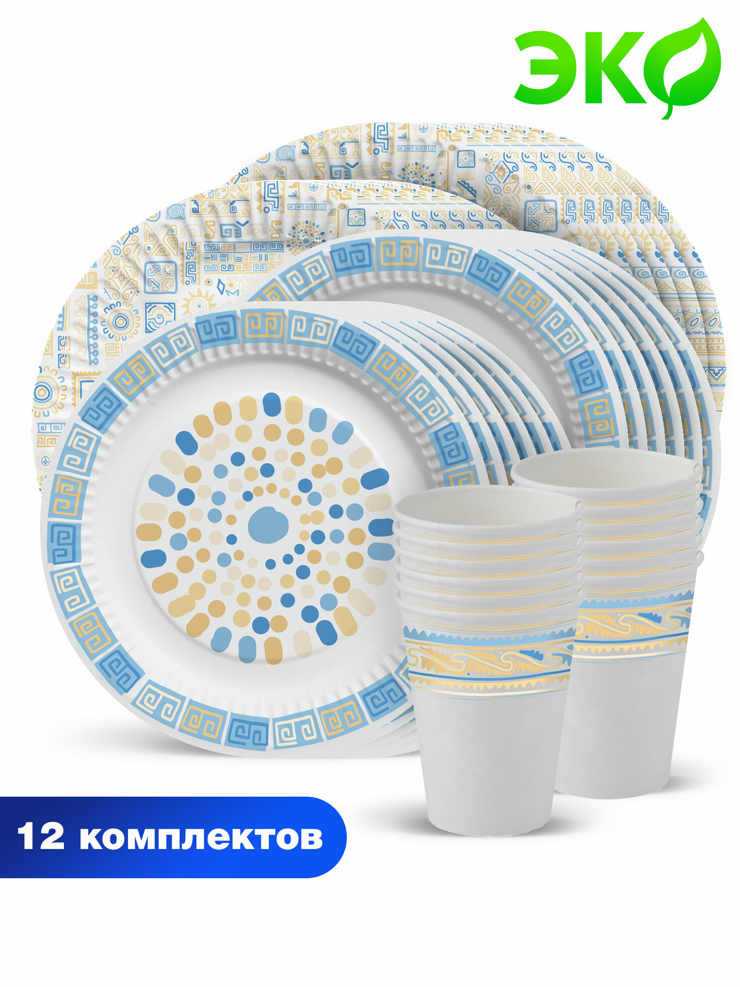 Набор бумажной одноразовой посуды для праздника Эко-стиль (тарелка мал, тарелка бол, стакан, по 12 шт.) ND Play