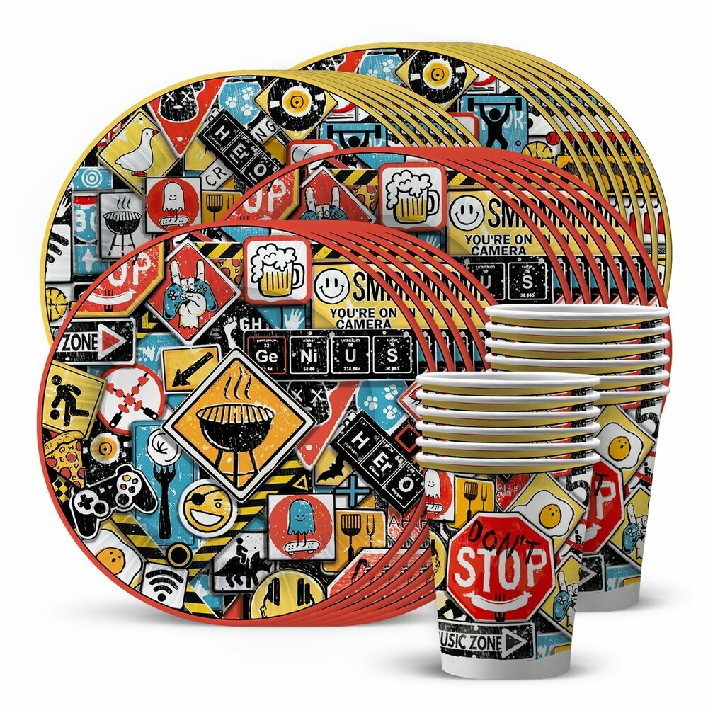 СохранитьНабор одноразовой бумажной посуды для праздника ND Play / Знаки яркие (тарелка бол, тарелка мал, стакан, по 12 шт.) интересное: