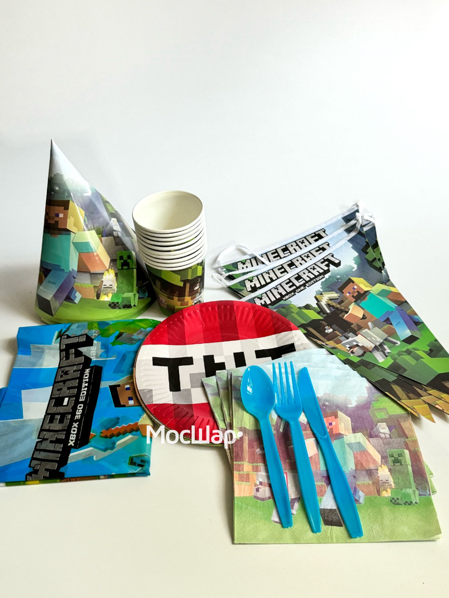Купить Набор для сервировки стола Майнкрафт одноразовая посуда на 10 персон