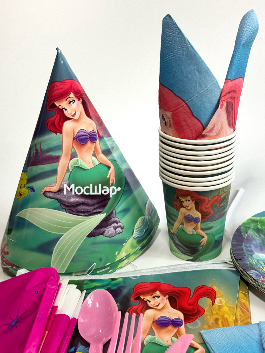 Купить Набор для сервировки стола Русалочка одноразовая посуда на 10 персон