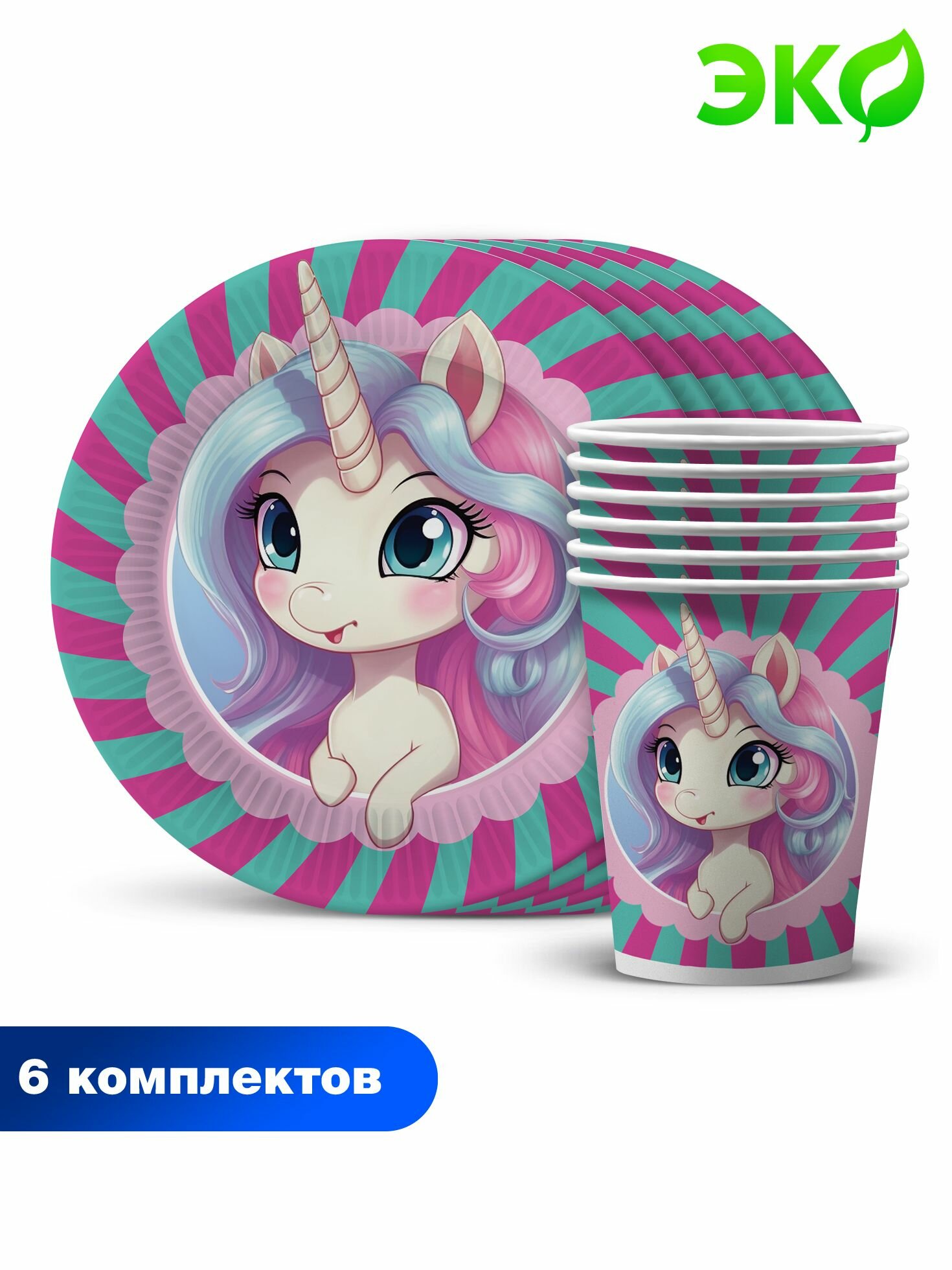 Купить Набор одноразовой бумажной посуды для праздника ND Play / Единорожка (тарелка 18 см, стакан, по 6 шт.)