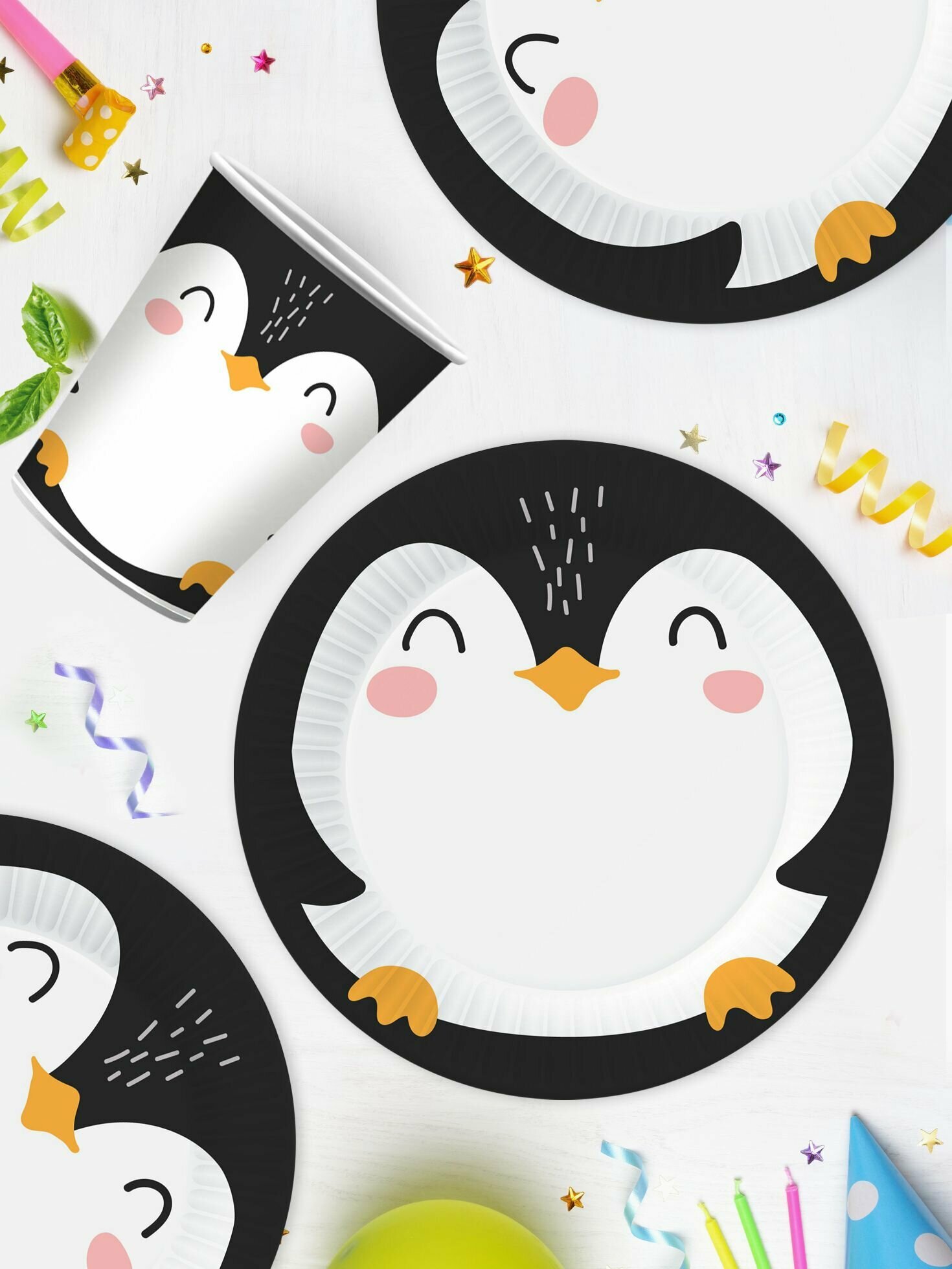 Купить Набор одноразовой бумажной посуды для праздника ND Play / Хэппи Зоо / Животные. Пингвин (тарелка 18 см, стакан, по 12 шт.)