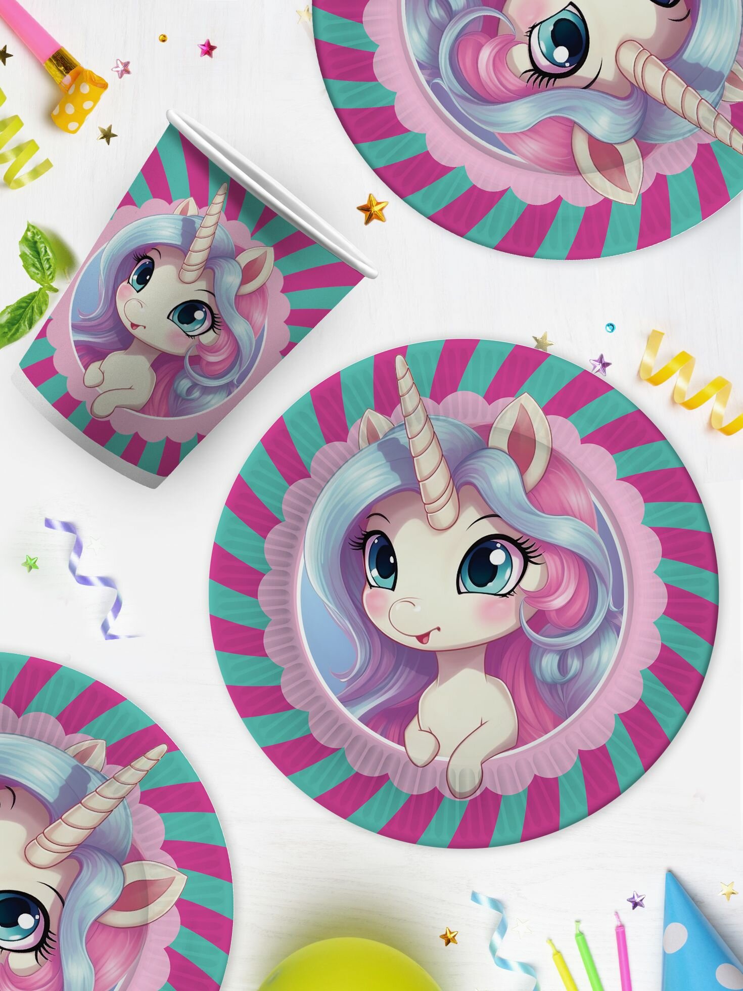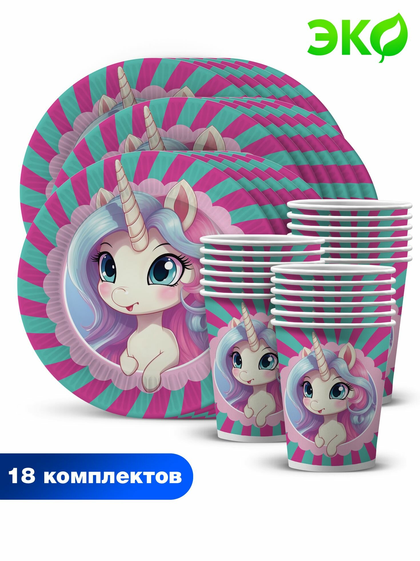 Купить Набор одноразовой бумажной посуды для праздника ND Play / Единорожка (тарелка 18 см, стакан, по 18 шт.)