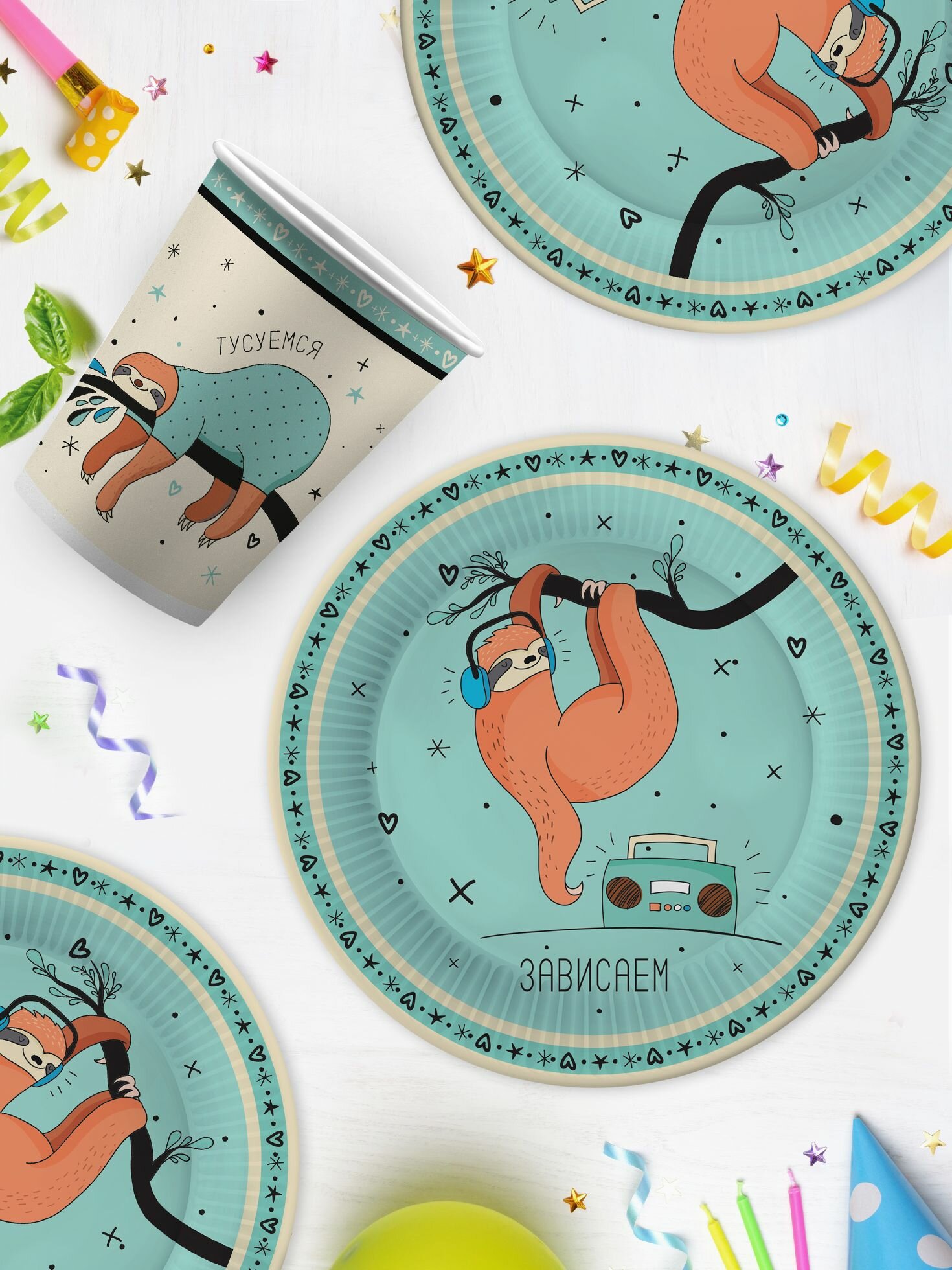 Купить Набор одноразовой бумажной посуды для праздника ND Play / Зависаем (тарелка 18 см, стакан, по 18 шт.)