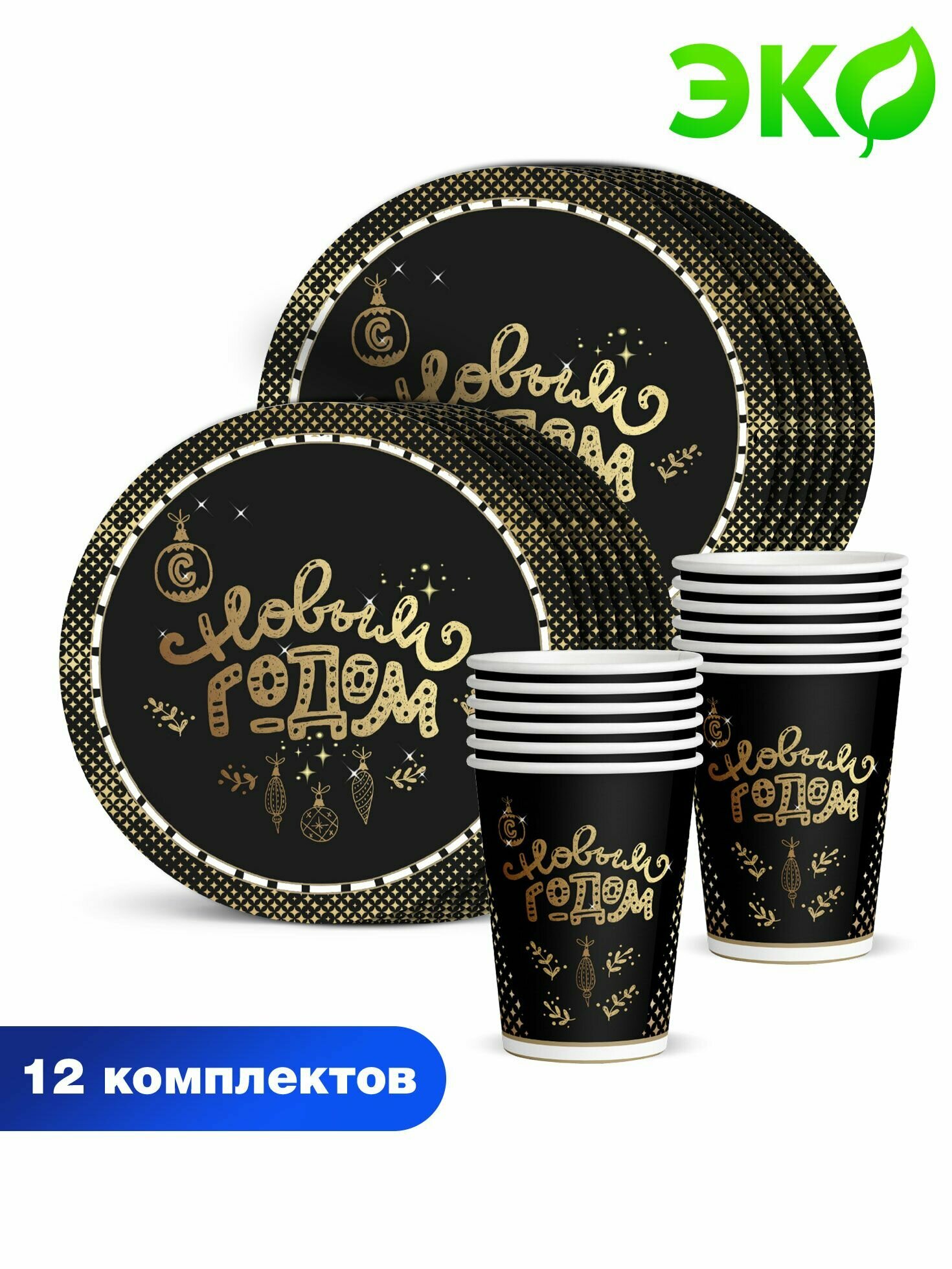 Купить Набор одноразовой бумажной посуды для праздника ND Play / С Новым годом! Дизайн 2 (тарелка 18 см, стакан, по 12 шт.)