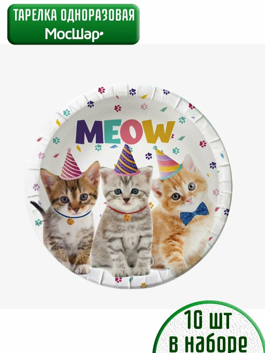 Купить Набор бумажных одноразовых тарелок с котиками ,10 шт, диаметр 18 см
