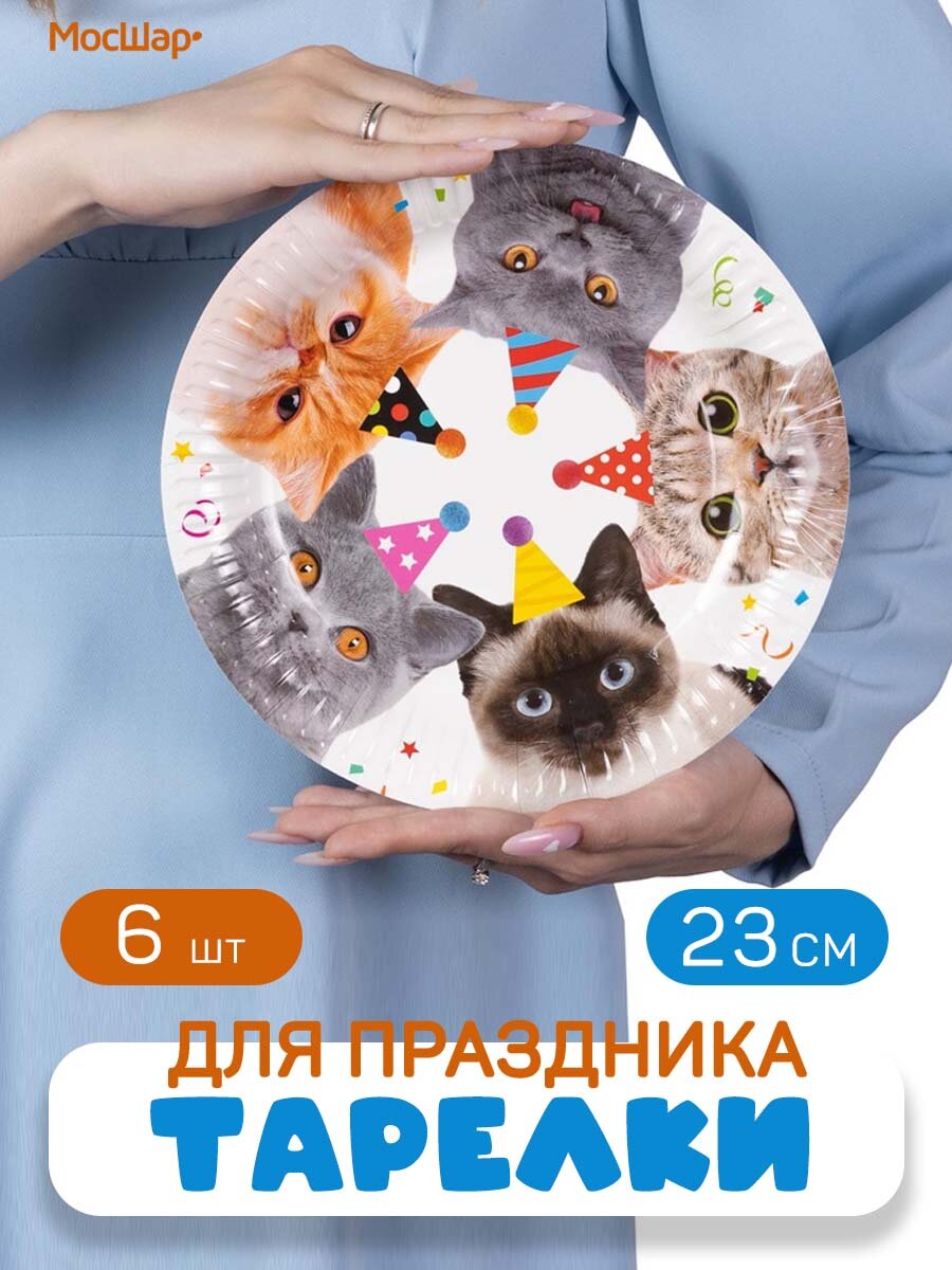 Купить Тарелки бумажные одноразовые для праздника Котики 23 см 6 шт