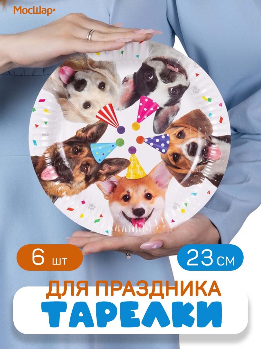 Купить Тарелки бумажные одноразовые для праздника Собачки 23 см 6 шт