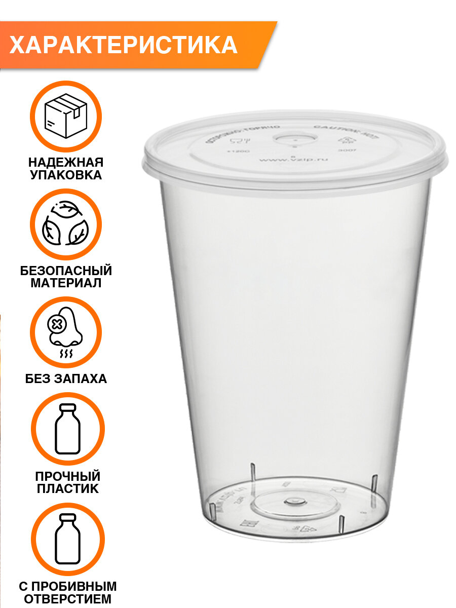 Одноразовая посуда - одноразовый стакан с плоской крышкой, 500 мл, 400 шт