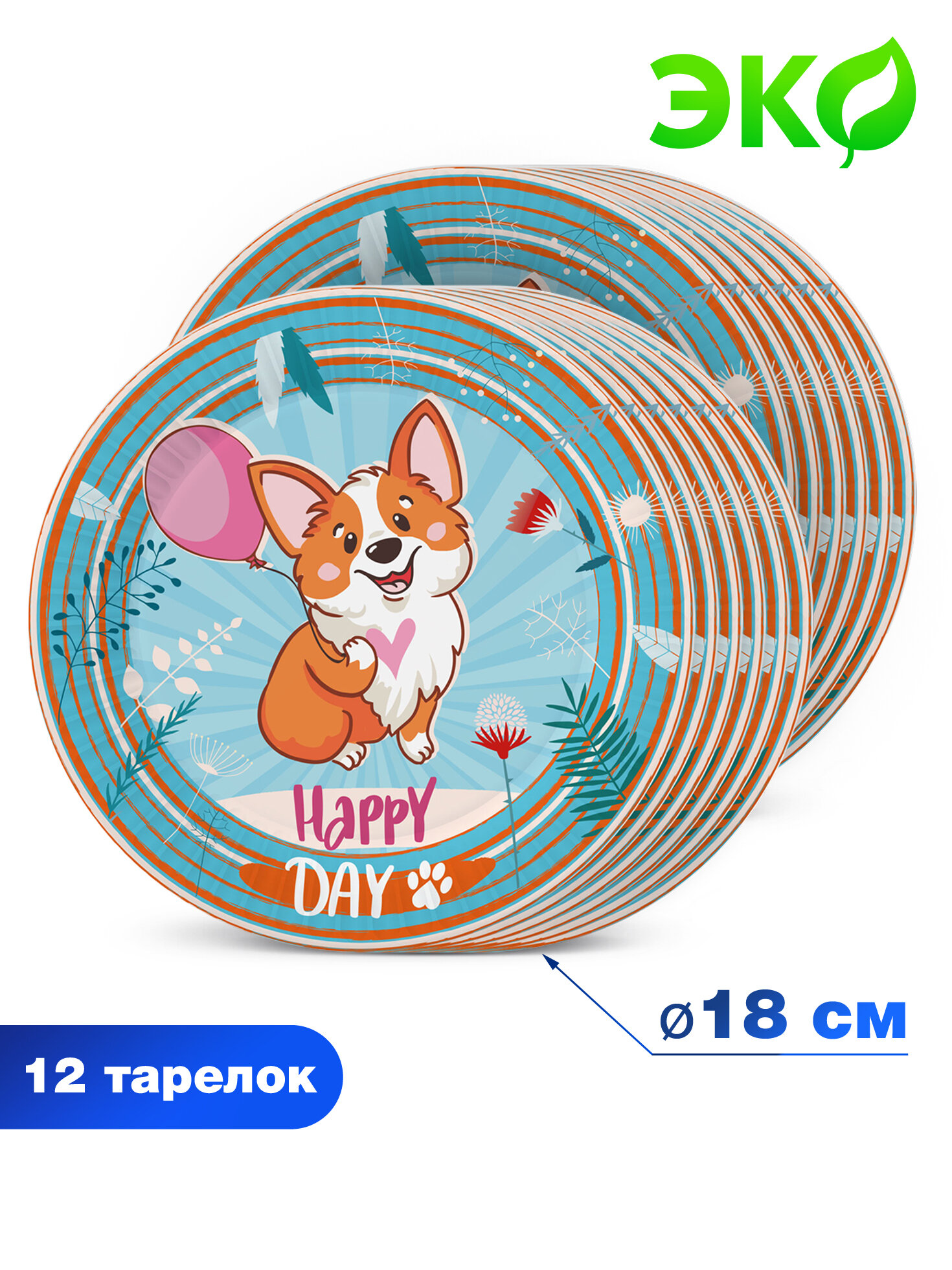 Набор одноразовых бумажных тарелок Корги, в т/у пленке, 12 шт d=180 мм ND Play интересное: