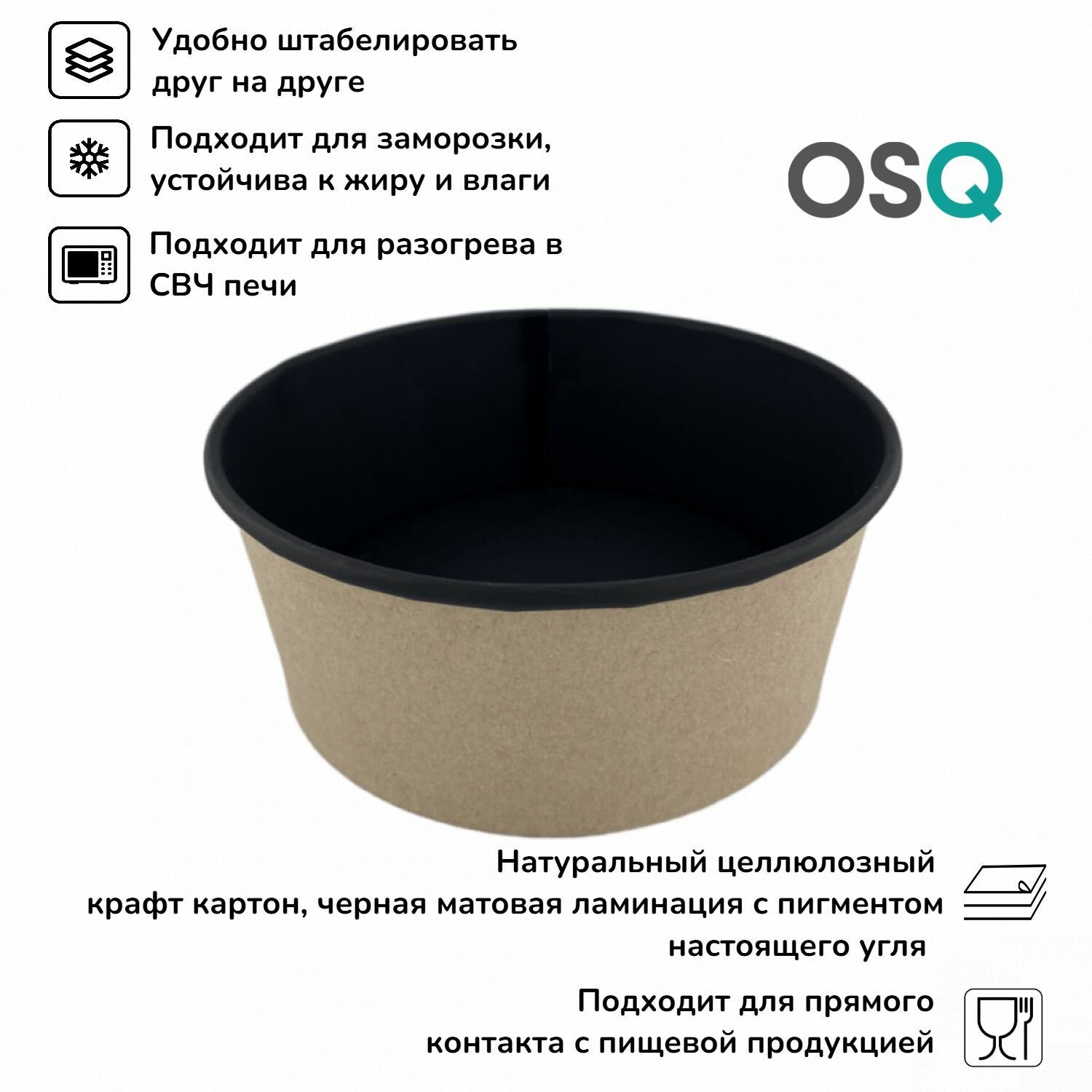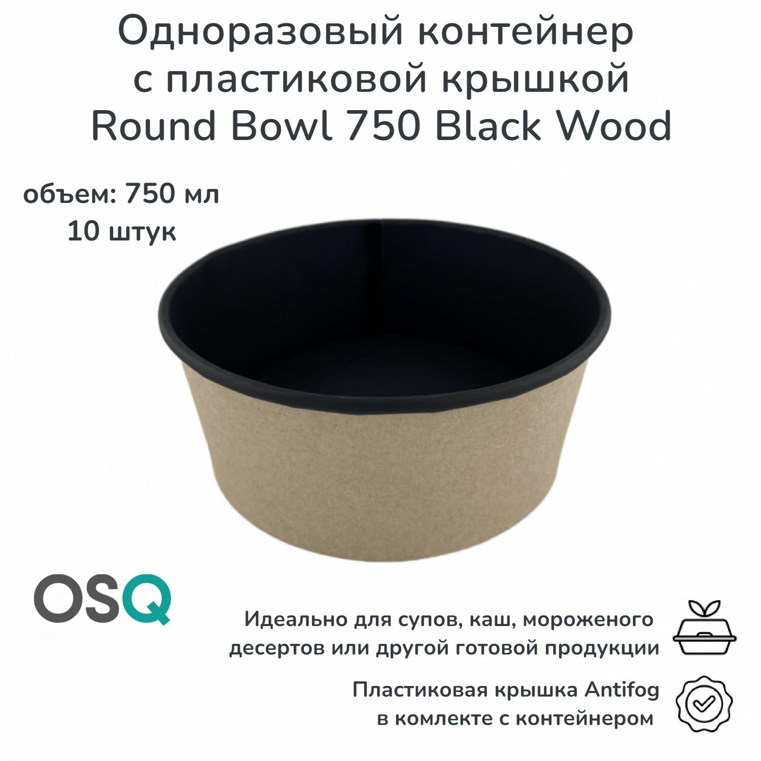 СохранитьОдноразовые контейнеры с крышкой плоской OSQ, круглые, черные, объем 750 мл, 10 шт. интересное: