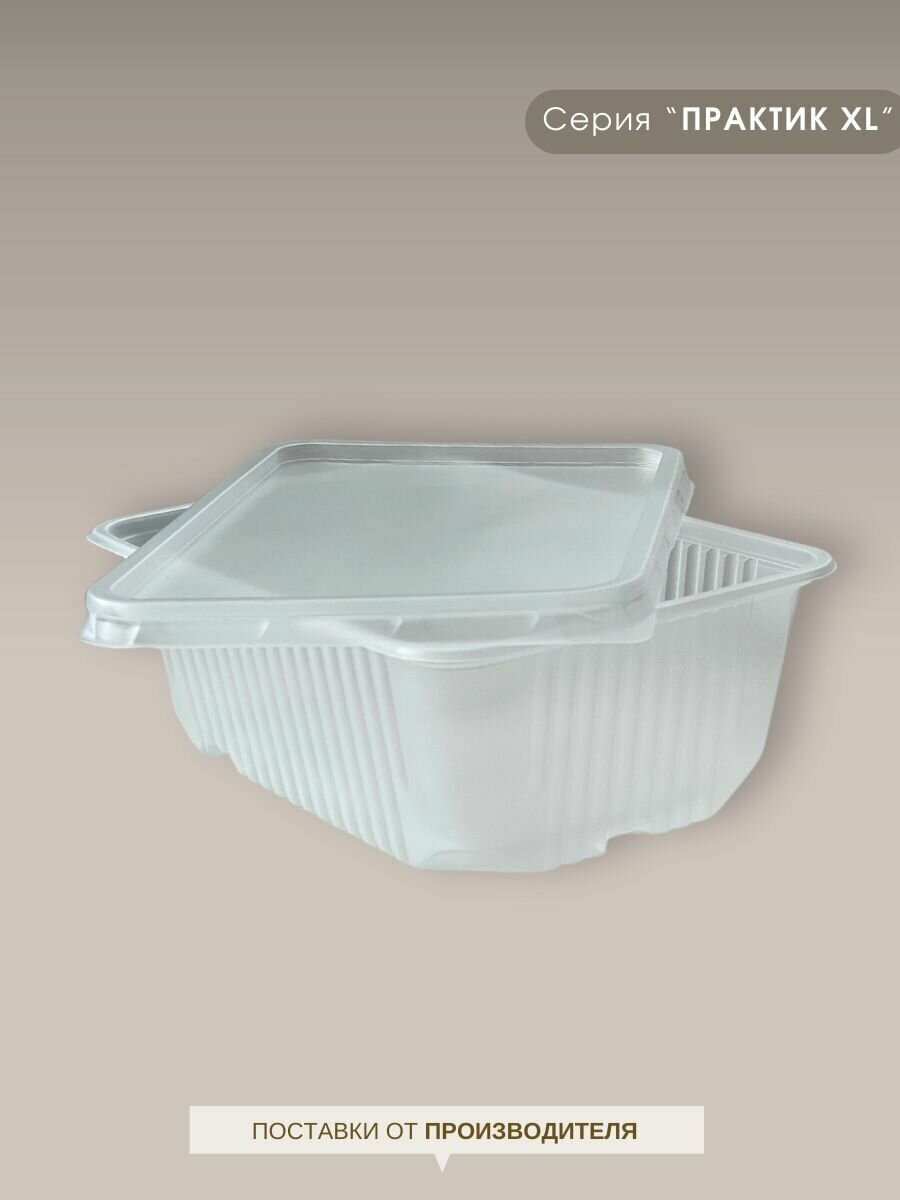 Контейнеры одноразовые пластиковые пищевые с крышкой прозрачные 1500 мл, набор контейнеров 100 шт, "Каштан Практик XL профи"