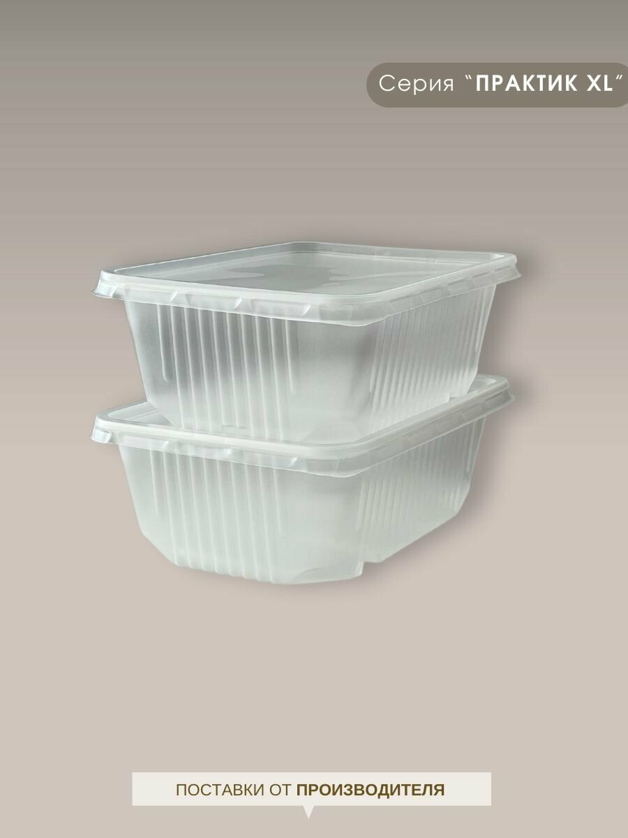 Контейнеры одноразовые пластиковые пищевые с крышкой прозрачные 2000 мл, набор контейнеров 100 шт, "Каштан Практик XL профи"
