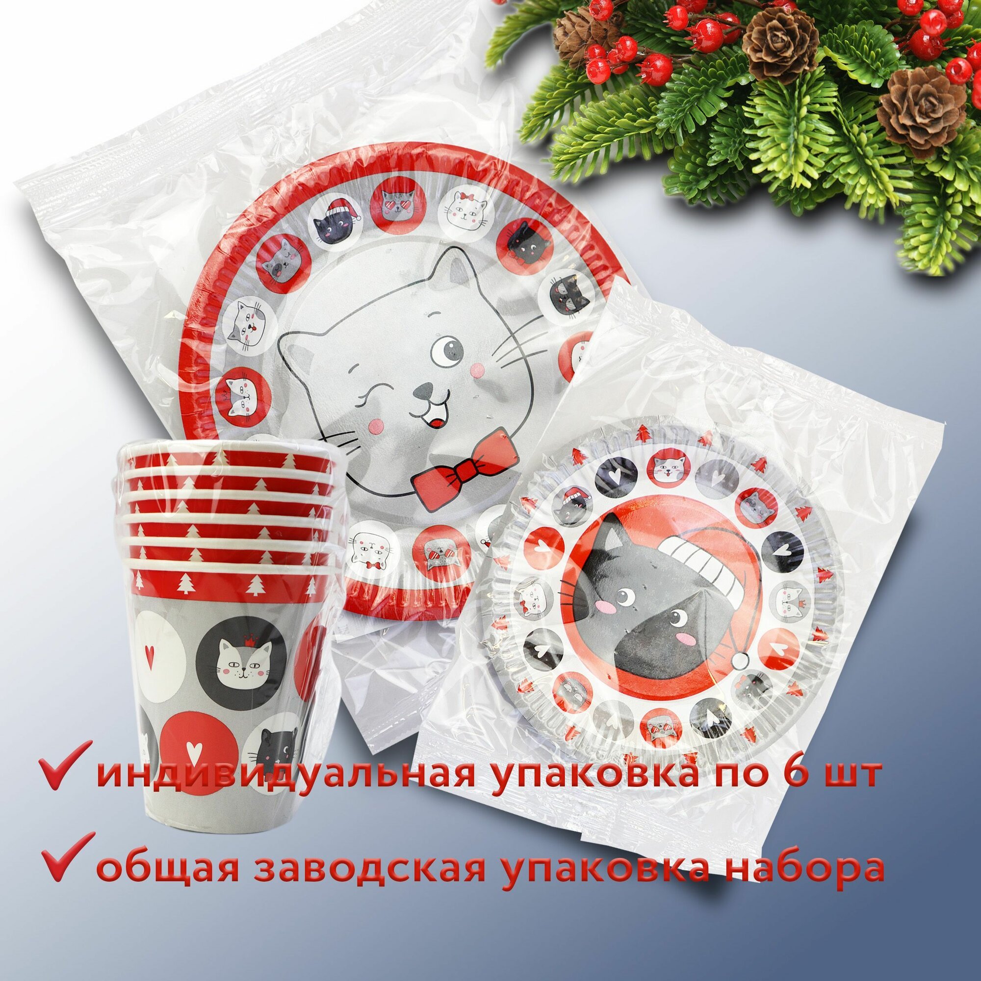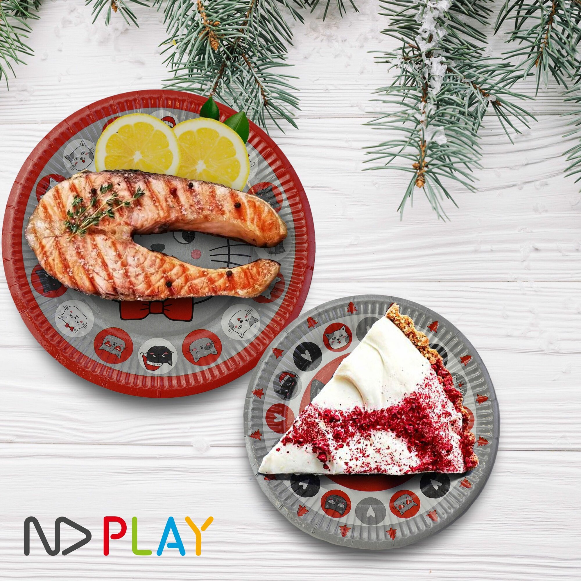 Купить Набор бумажной одноразовой посуды для праздника ND Play / Серые котики (стакан, тарелка 18 см, тарелка 23 см, по 12 шт.)