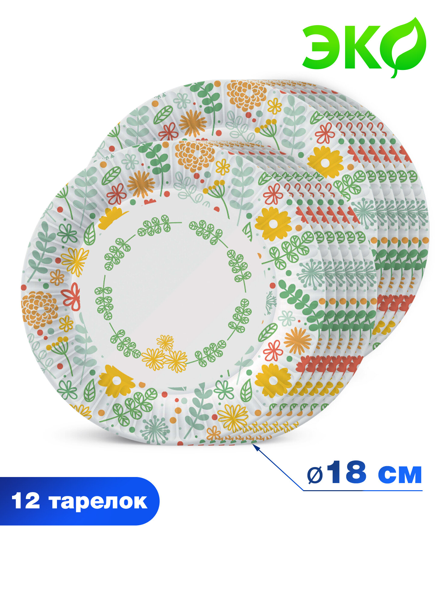 Набор одноразовой бумажной посуды для праздника ND Play / Воздушный зефир (тарелка 18 см, тарелка 23 см, стакан, по 12 шт.)