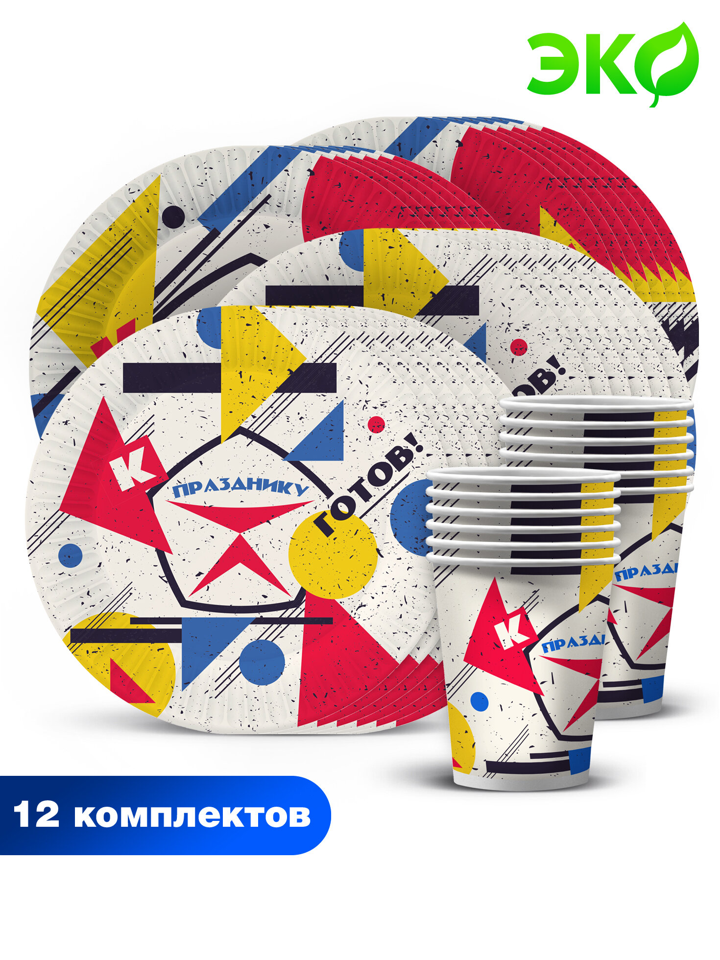 Купить Набор одноразовой бумажной посуды для праздника ND Play / К празднику готов! (тарелка бол, тарелка мал, стакан, по 12 шт.)