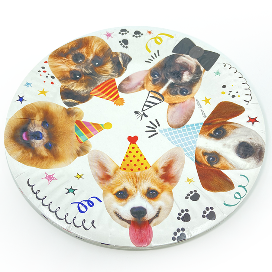 Купить Тарелки бумажные одноразовые Riota Собаки в праздничных колпаках, 18 см, 6 шт