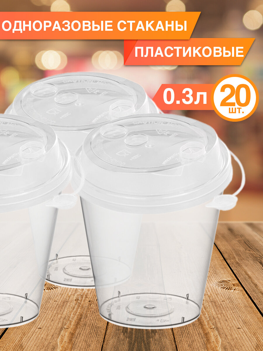 Купить Одноразовая посуда - одноразовый стакан с крышкой заглушкой, 300 мл, 20 шт