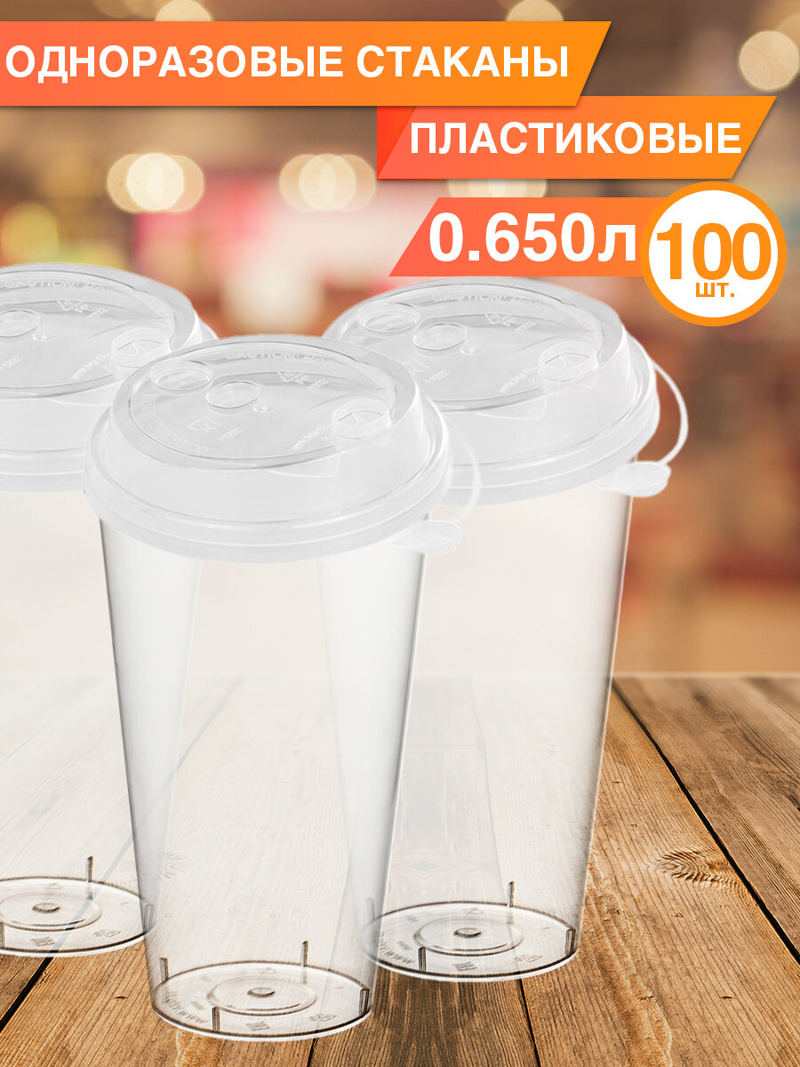 Купить Одноразовая посуда - одноразовый стакан с крышкой заглушкой, 650 мл, 100 шт