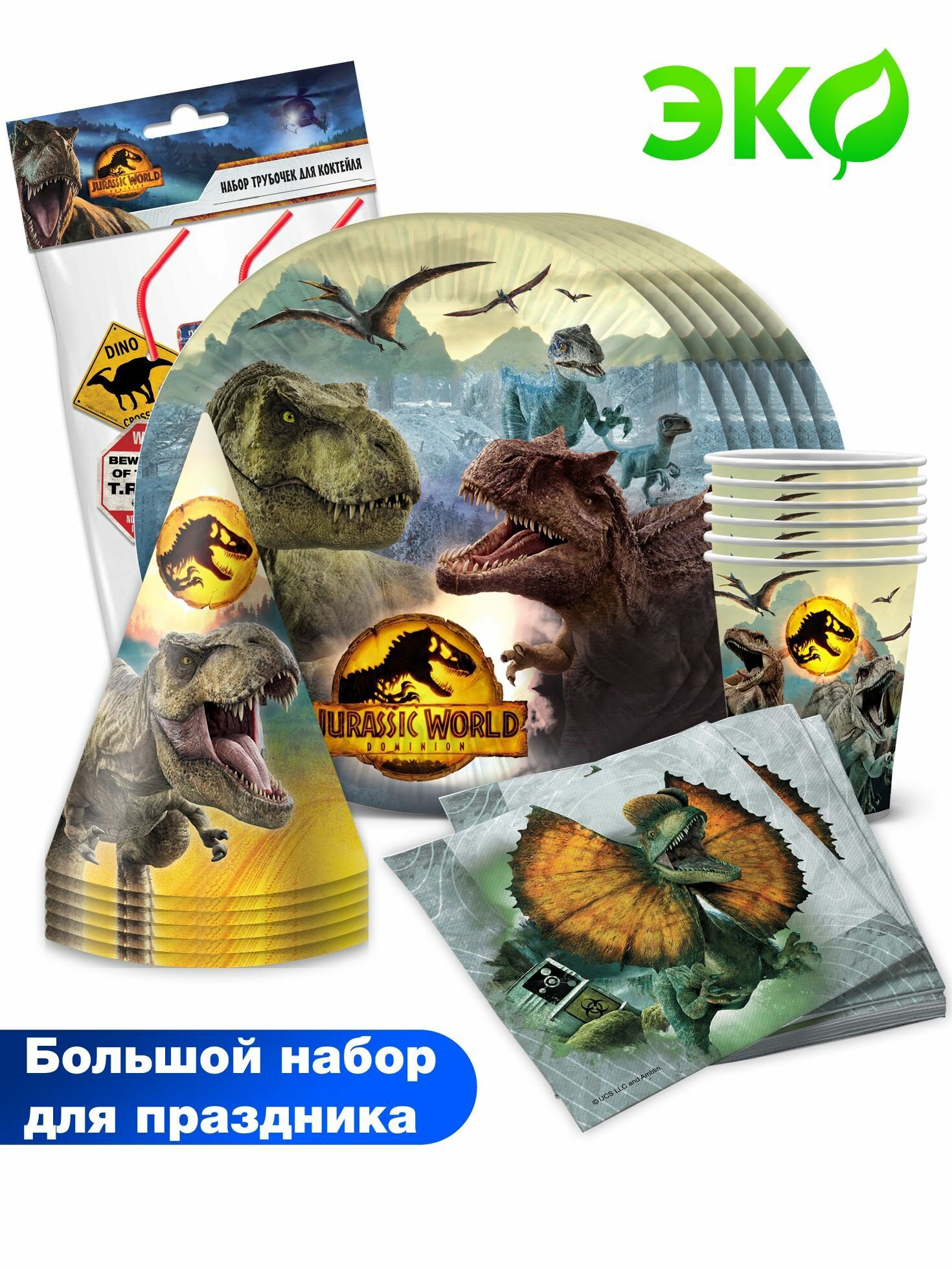 Купить Набор для праздника ND Play / Jurassic World /Динозавры, желтый (салфетки, трубочки, тарелка мал, стакан, колпачки, по 6 шт.)