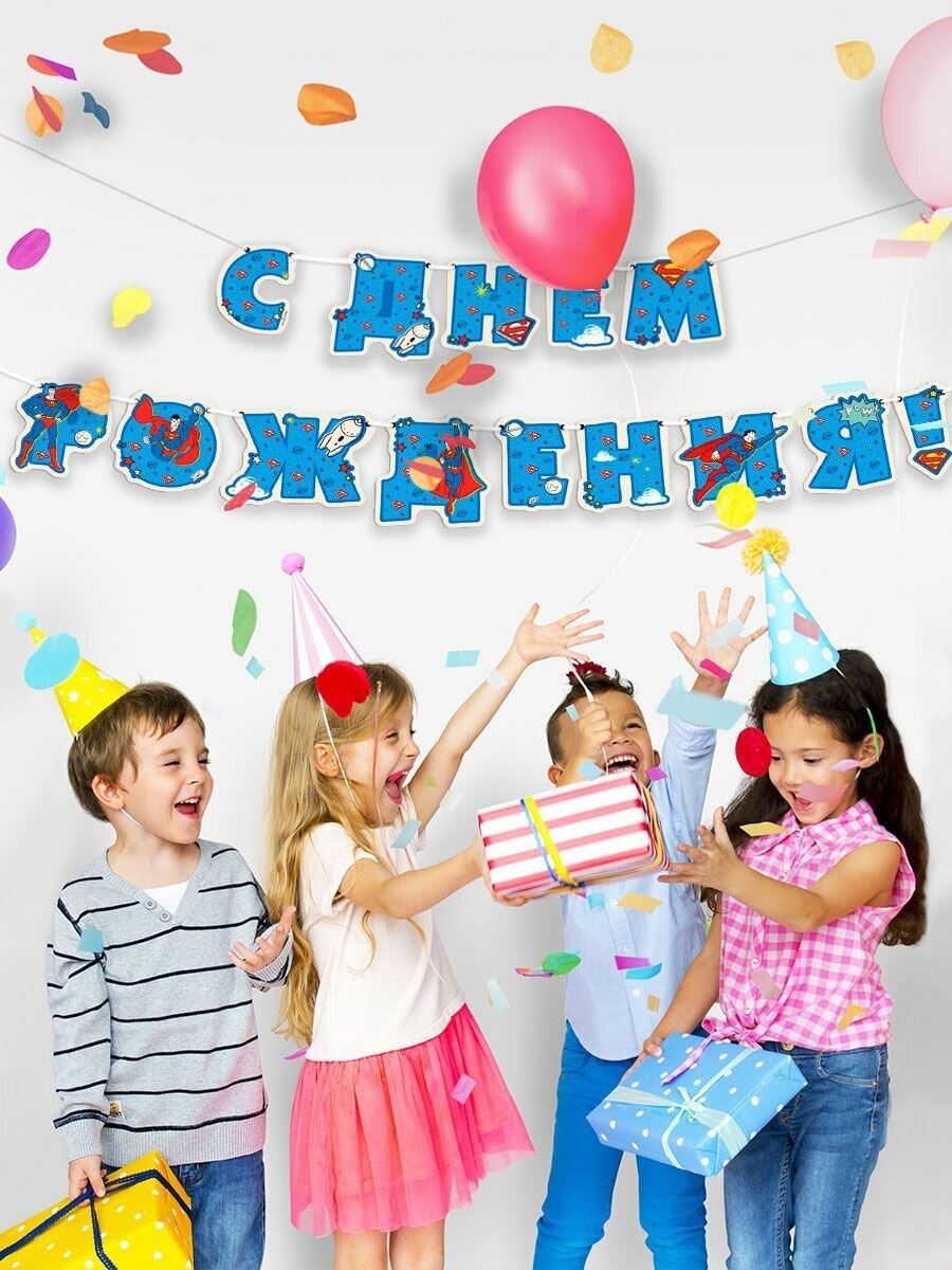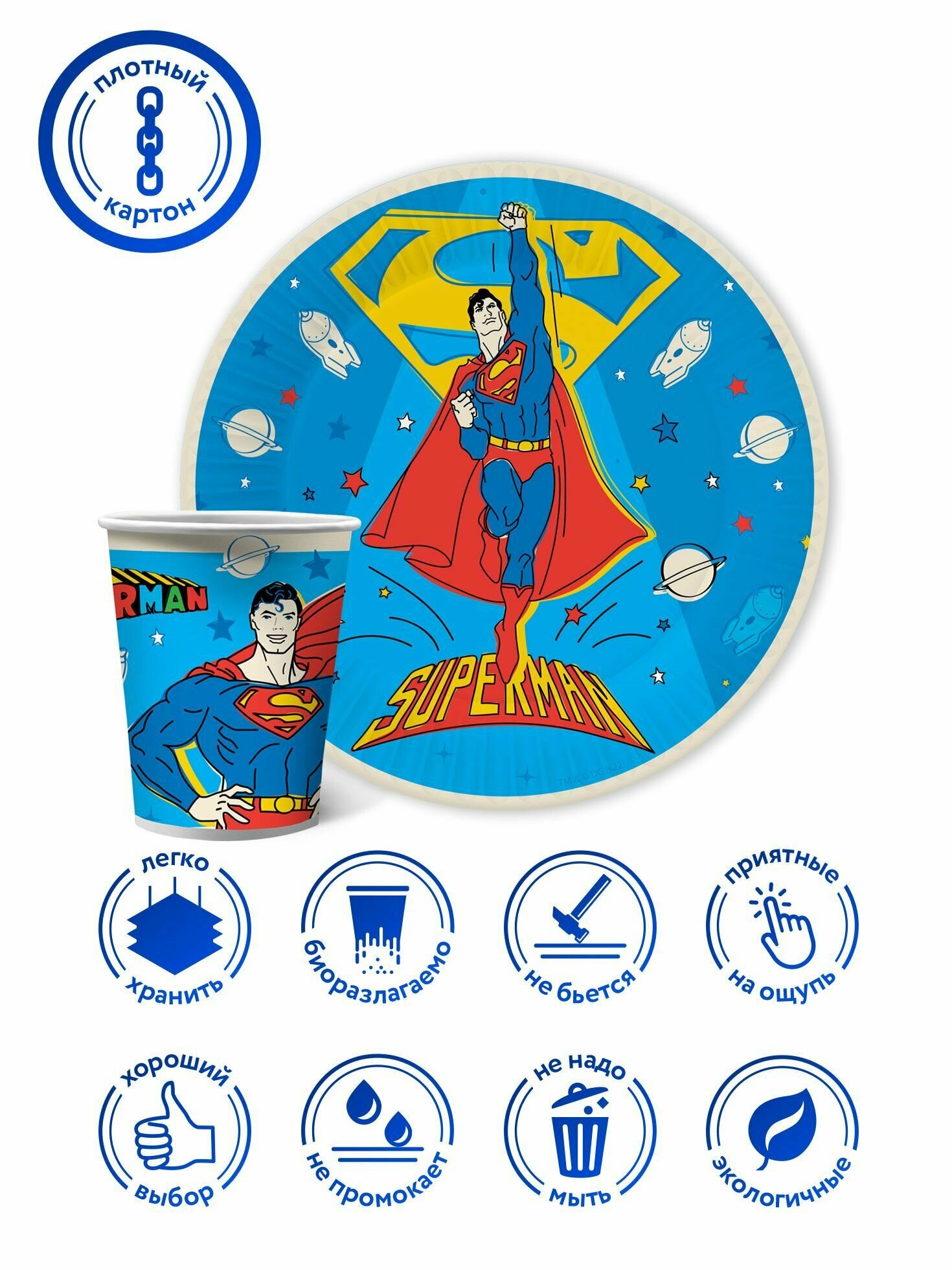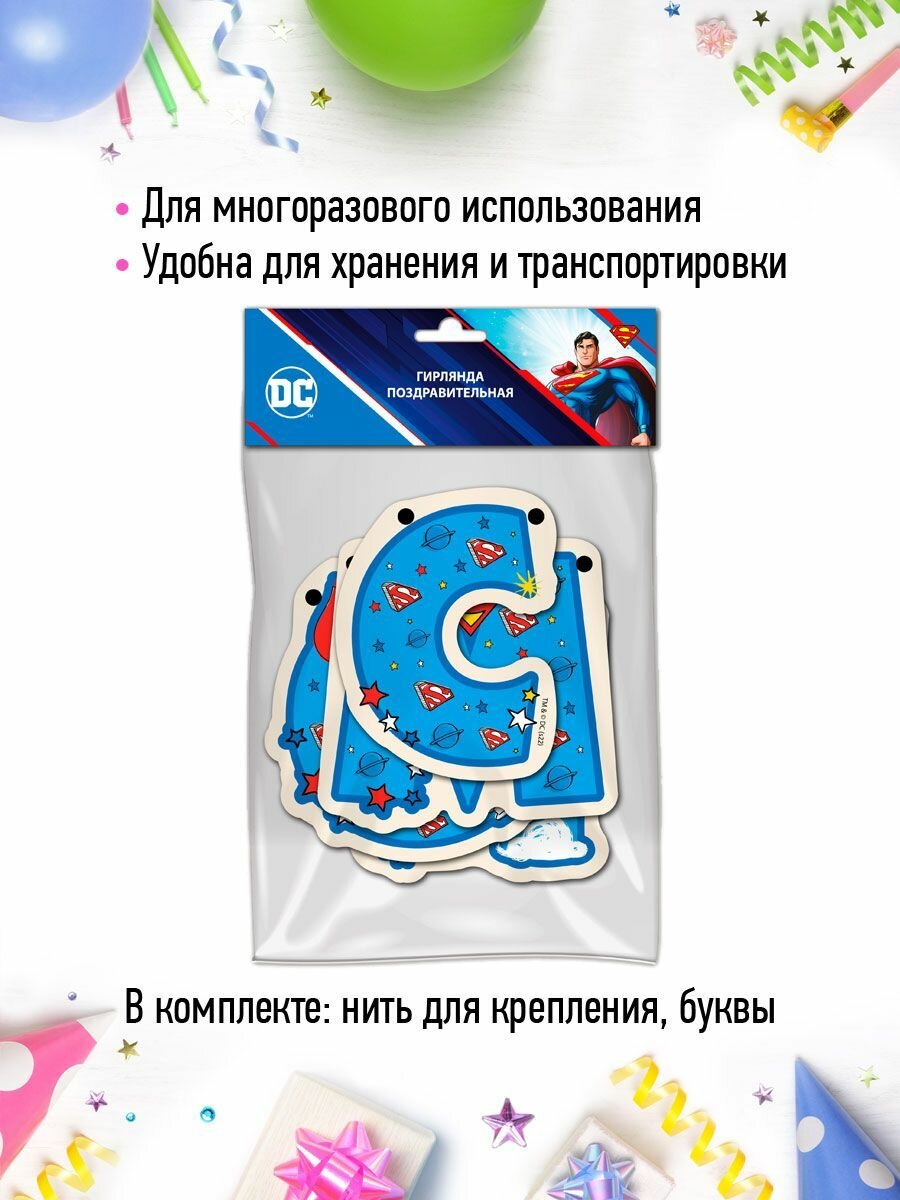 Купить Набор для праздника ND Play / Superman Лого (гирлянда, колпачки, трубочки, салфетки, тарелка мал, стакан, по 6 шт.)