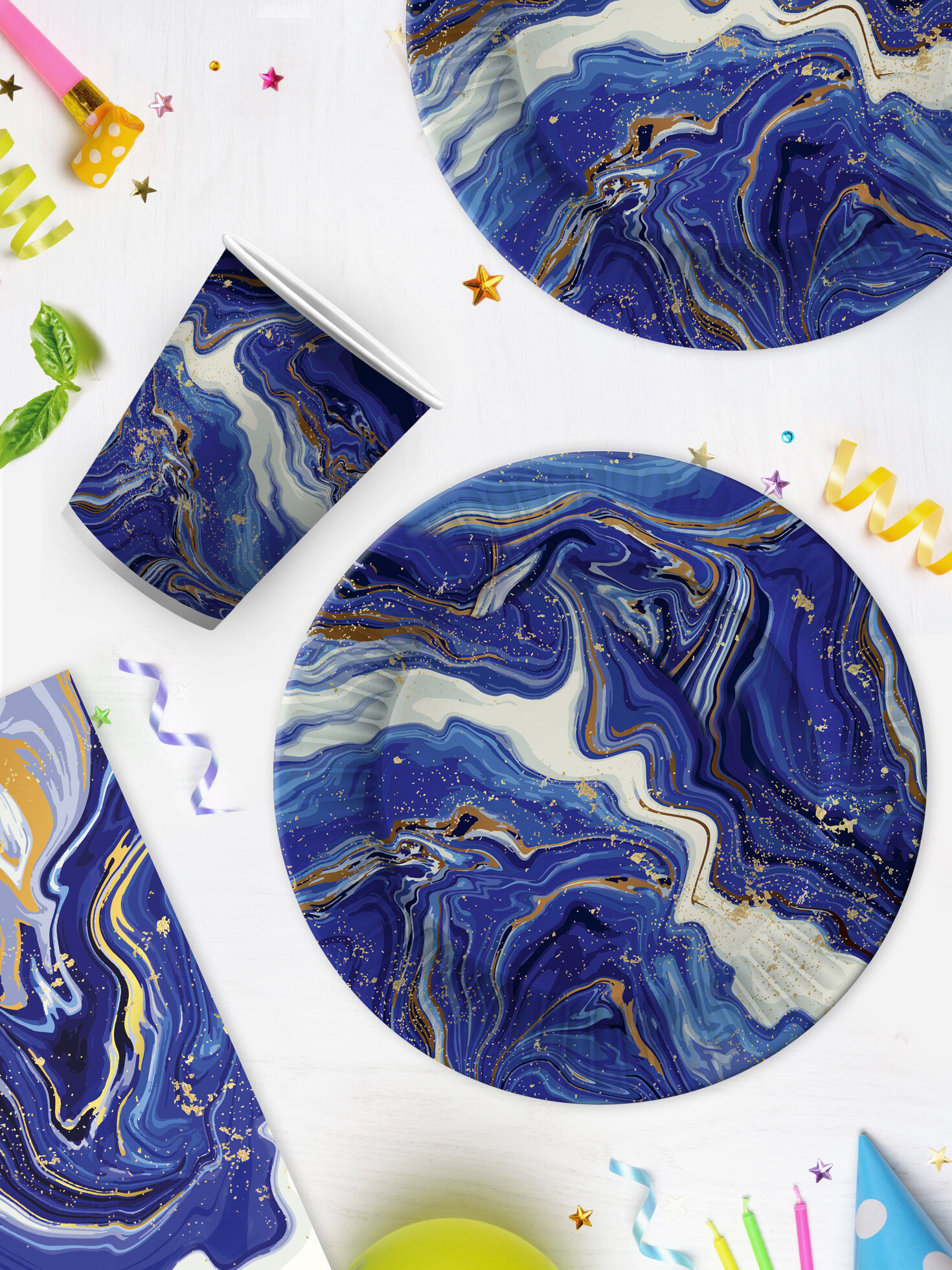 Купить Набор для праздника Смола синяя (тарелка бол, стакан, салфетки по 6 шт.)