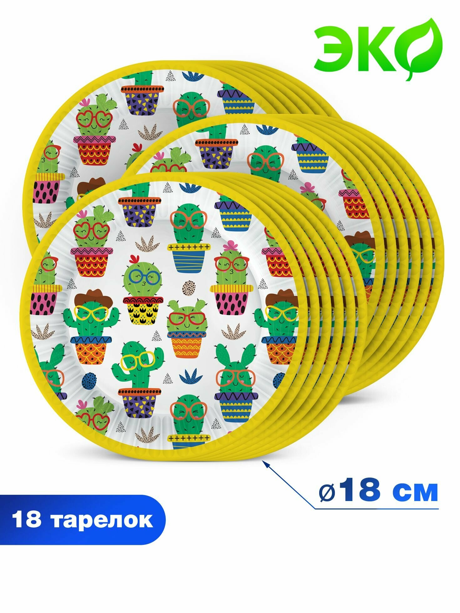 Одноразовая посуда для праздника и пикника ND Play. Набор бумажных тарелок Кактус 1 на 18 персон (диаметр 18 см, 18 шт.), 303646 интересное: