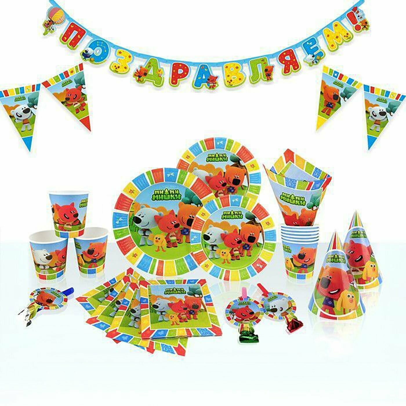 Страна Карнавалия Набор бумажной посуды Dangerous party, 6 тарелок, 6 стаканов, 1 гирлянда