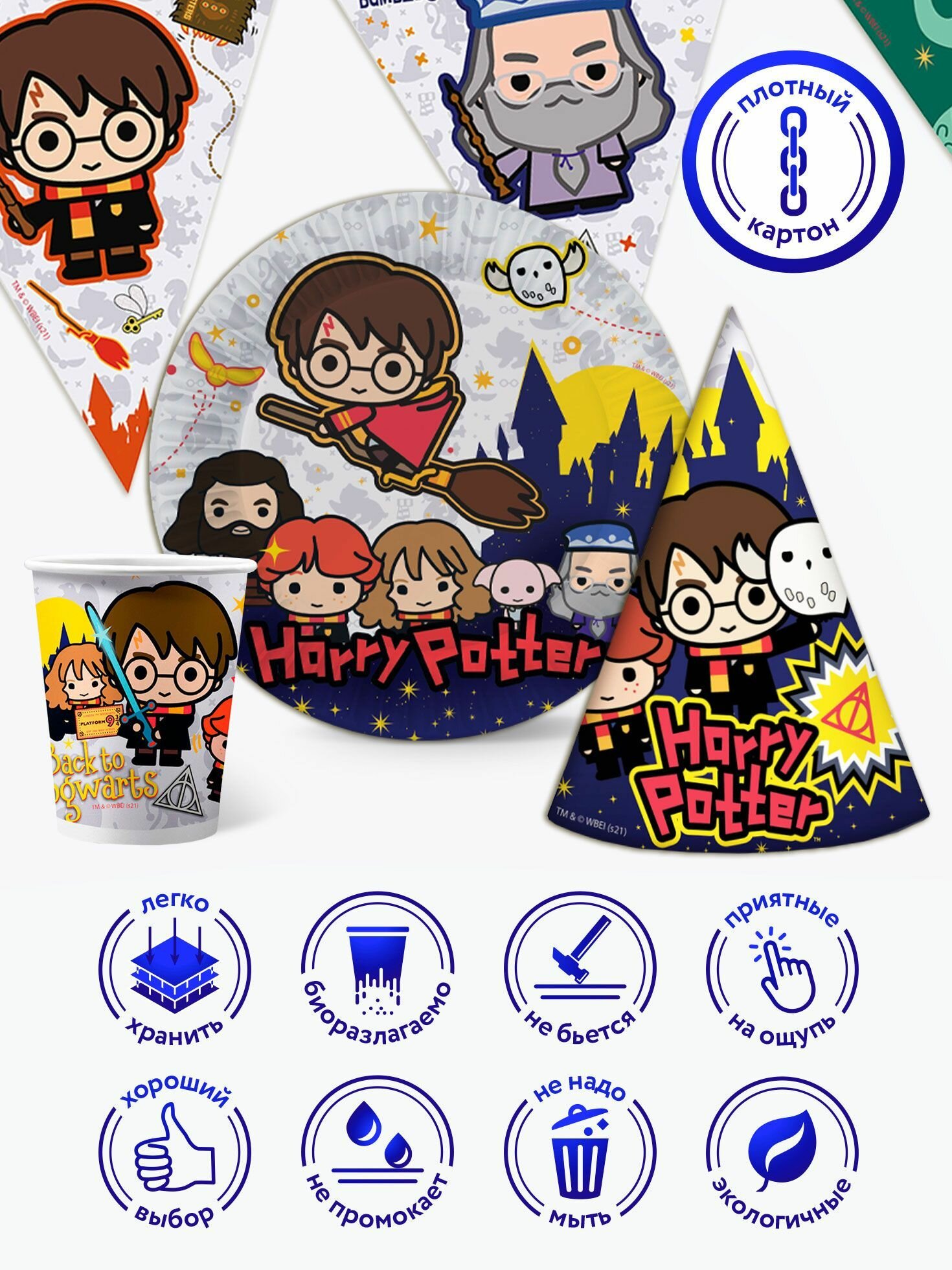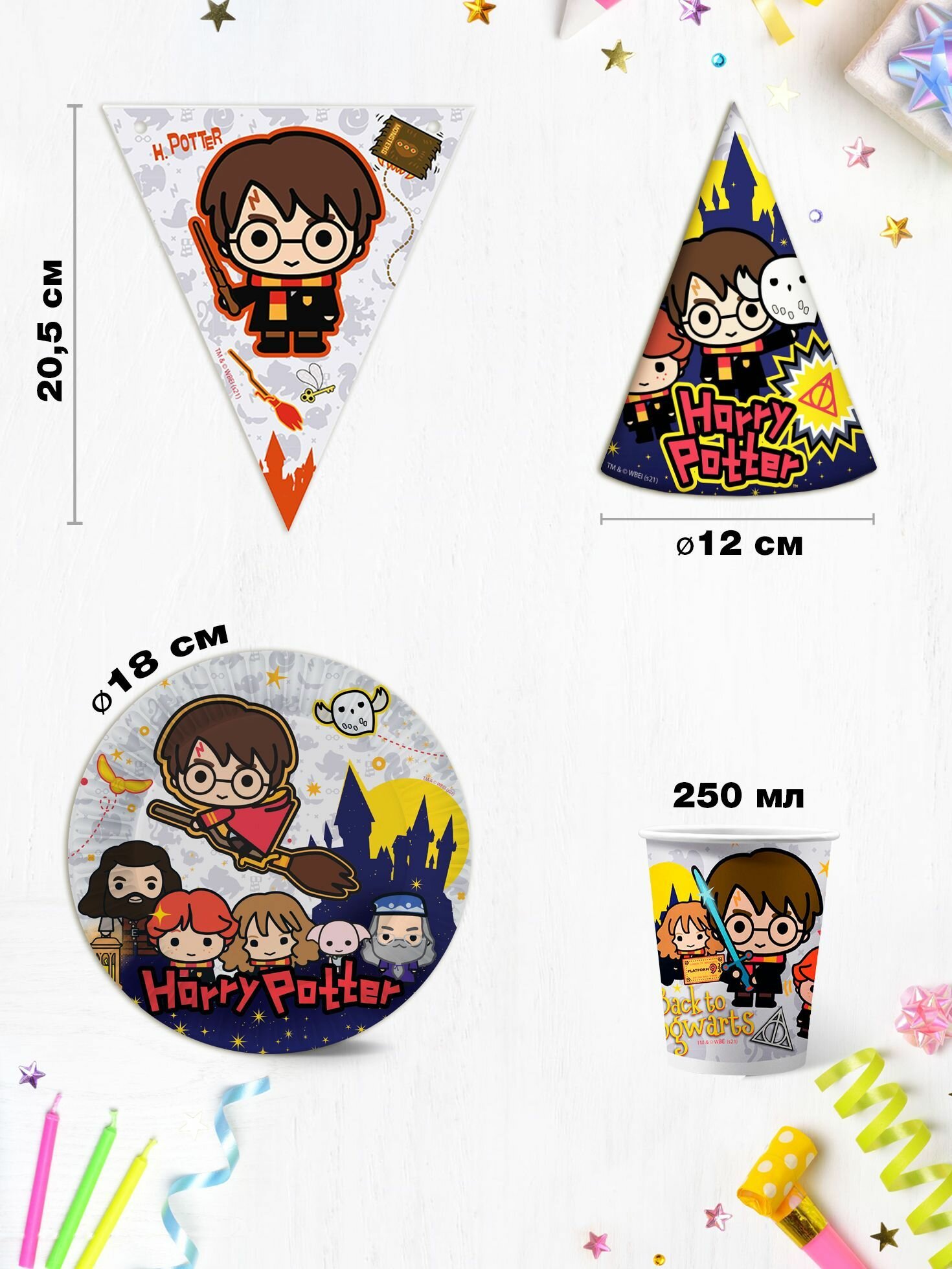 Купить Набор для праздника ND Play / Гарри Поттер чиби №3 (стакан, тарелка мал, трубочки, колпачки по 6 шт, салфетки, шпажки, шарики, гирлянда)