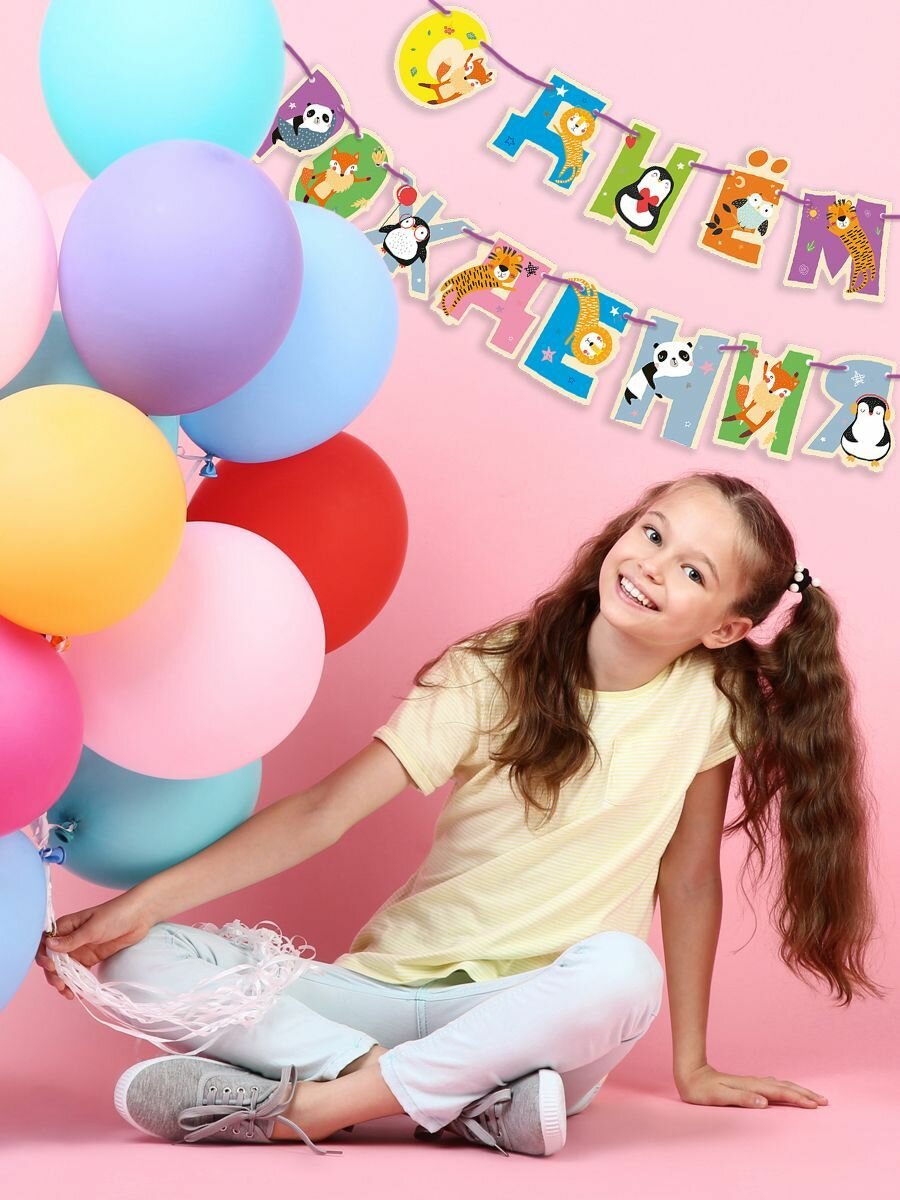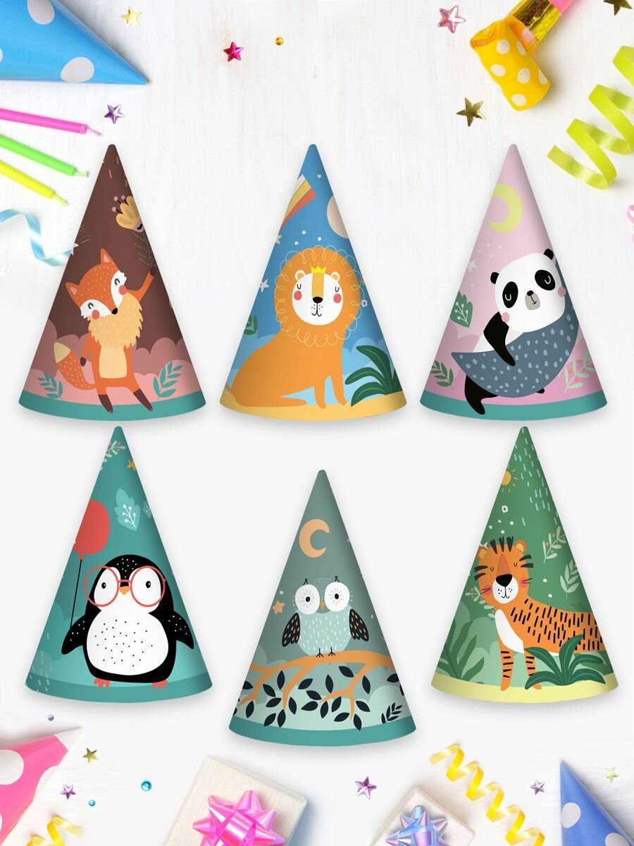 Купить Набор для праздника ND Play / Хэппи Зоо / Животные (гирлянда, колпачки, шарики, салфетки, тарелка мал, стакан, по 6 шт.)