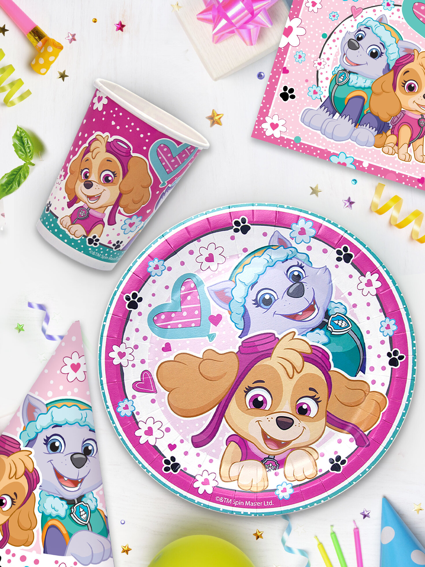 Купить Набор одноразовой бумажной посуды для праздника ND Play / Щенячий патруль № 3 (для девочек) (колпачки, стаканы, тарелки, салфетки)