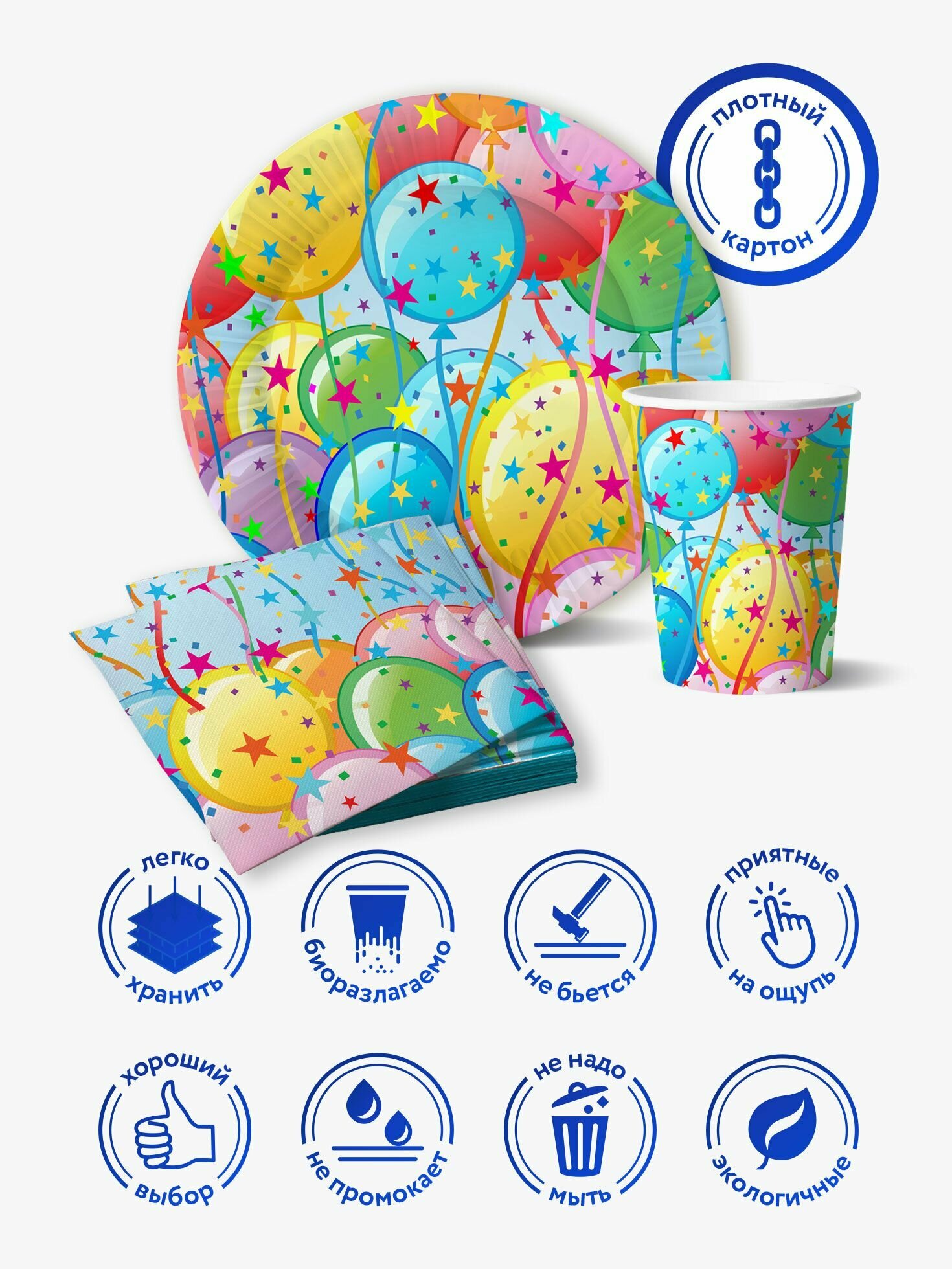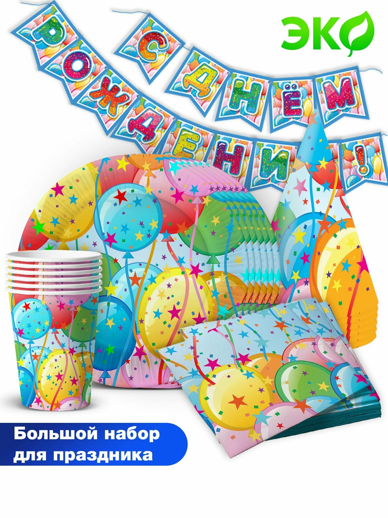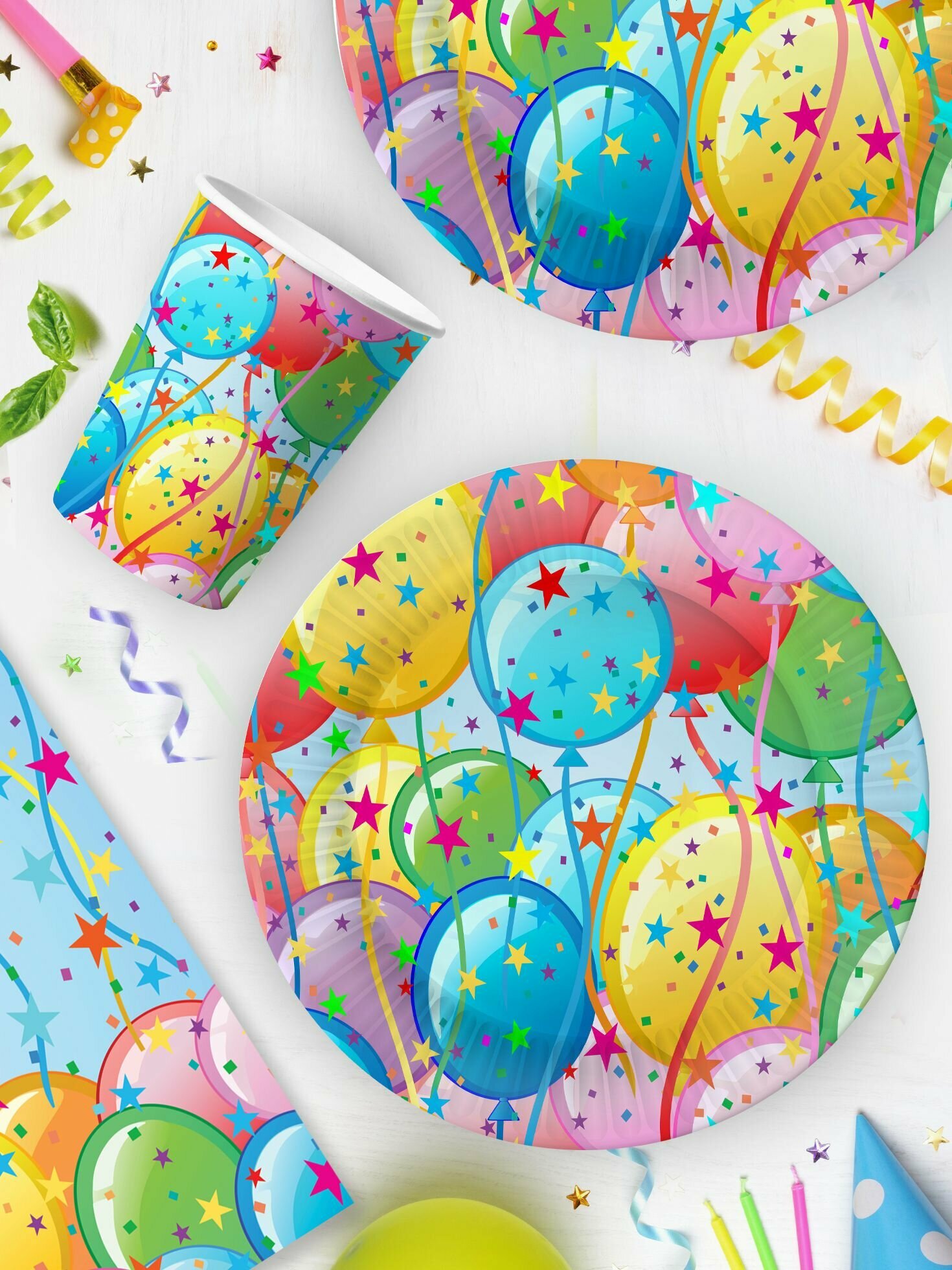 Купить Набор для праздника ND Play / Шары (гирлянда, колпачки, салфетки, тарелка 18 см, стакан по 6 шт.)