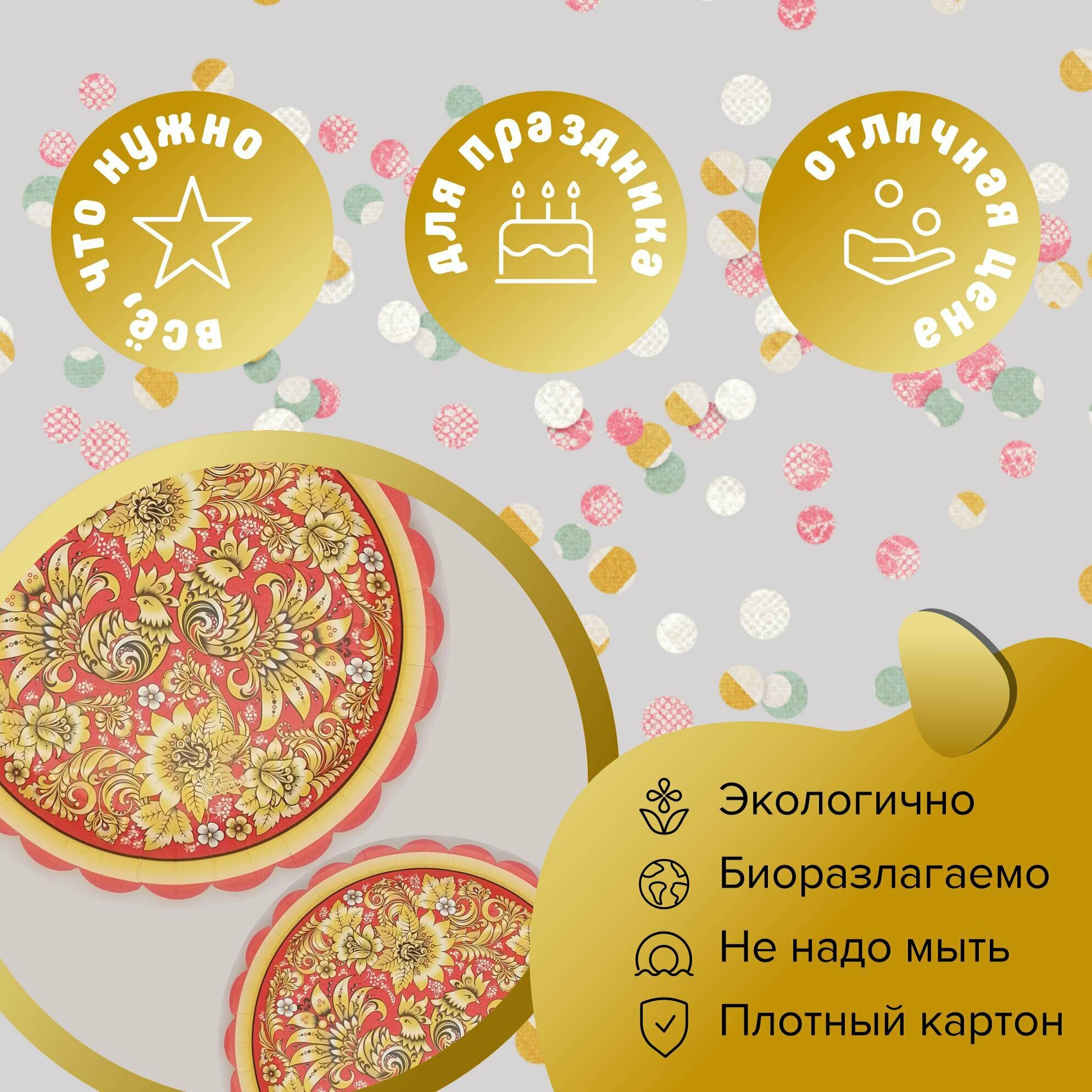 Большой набор одноразовой посуды Русские узоры 150 предметов красный интересное: