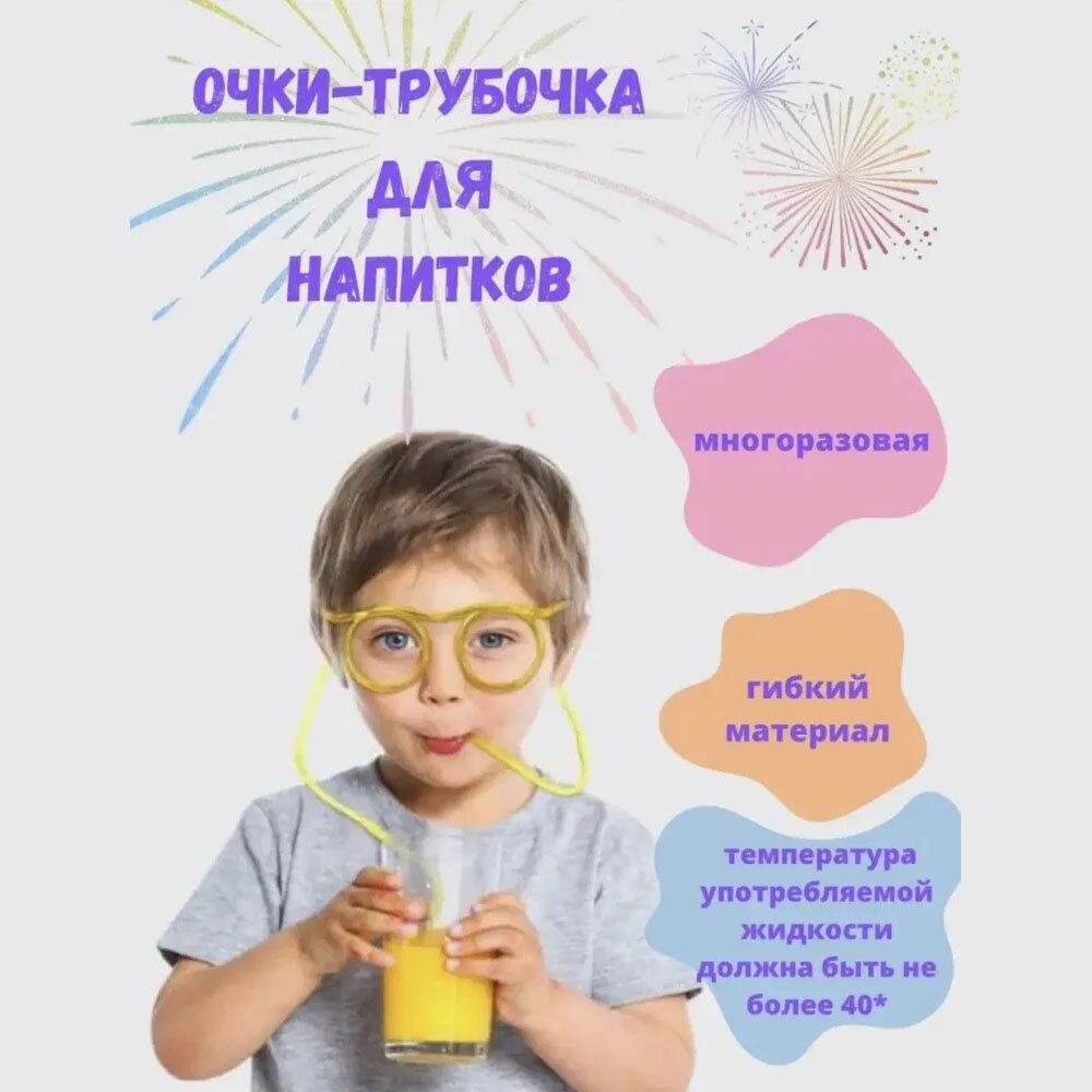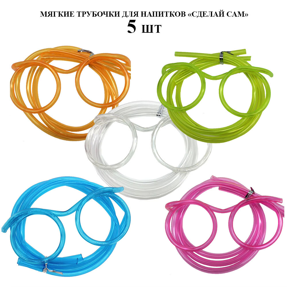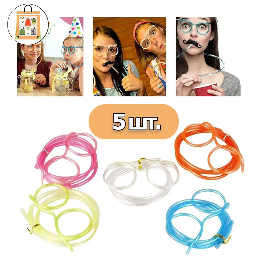 Соломка (трубочка) для коктейля, Солнечные очки, с изгибом, разноцветные, 5 шт + подарок интересное: