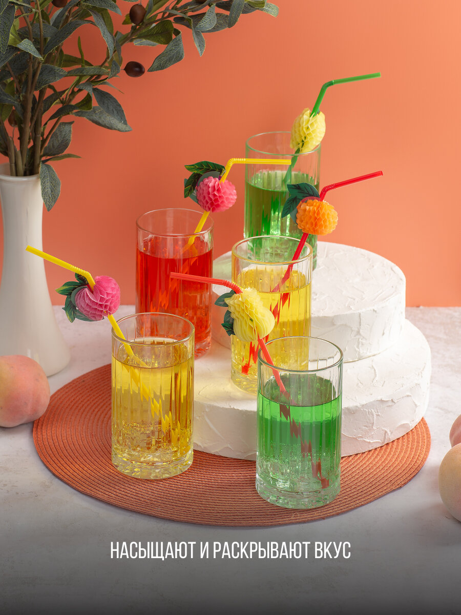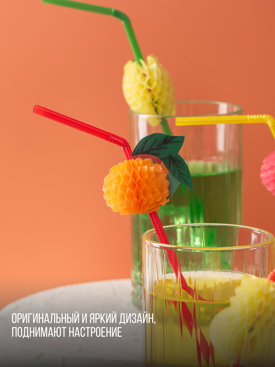 Трубочки для коктейлей и напитков с цветные 100 штук Papstar ФРУКТЫ интересное: