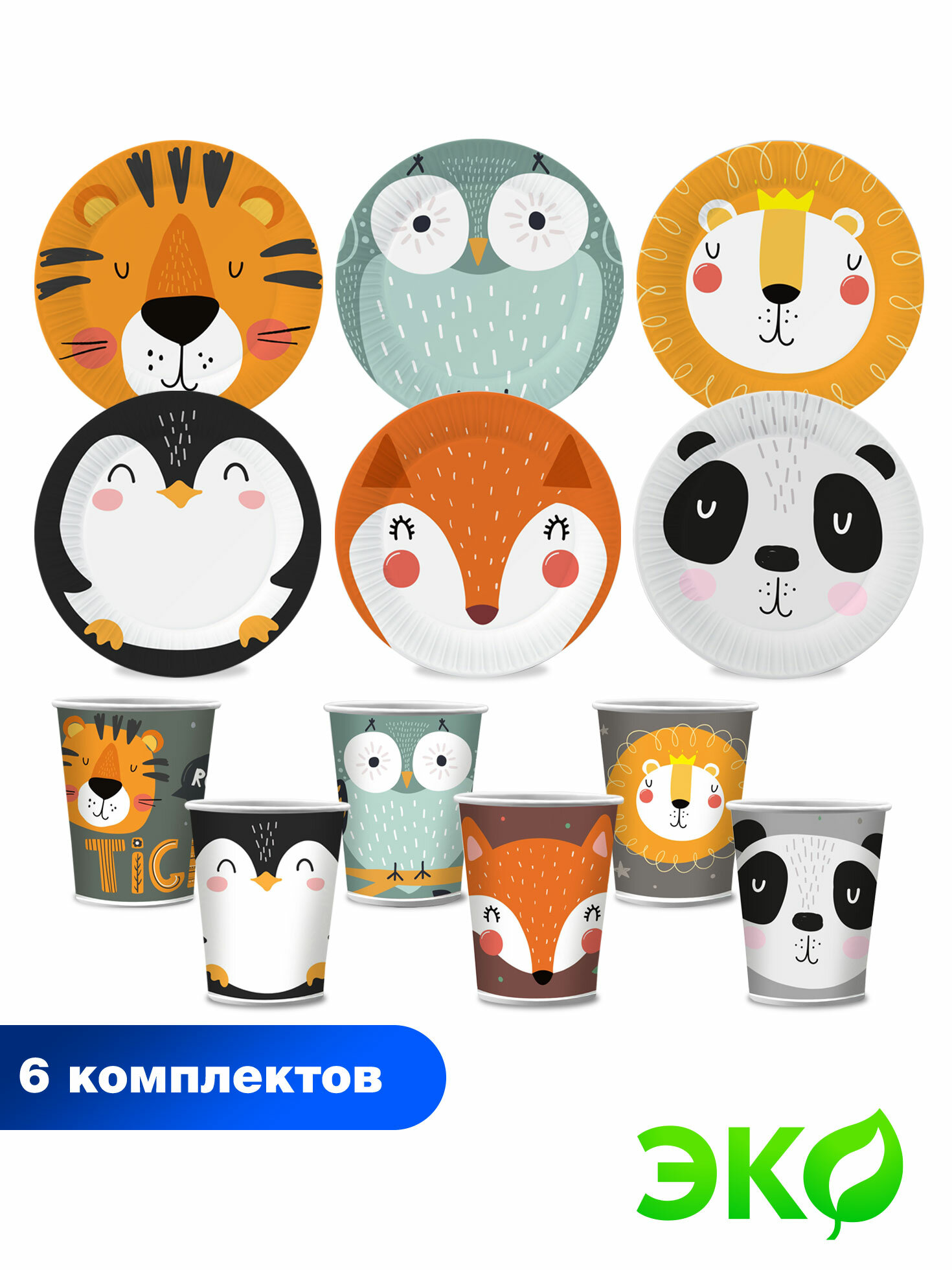 Купить Набор бумажной одноразовой посуды для праздника Хэппи Зоо (тарелка мал, стакан, по 6 шт.) ND Play